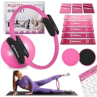 All-in-One Pilates Set für dein Home-Workout! Enthält alles was du brauchst: 35,6cm Pilates-Ring aus flexiblem Fiberglas, 3 Stoff-Widerstandsbänder, 3 Yogabänder, 2 Gleitscheiben und nen 25cm Pilates-Ball. Der Ring hat ne bequeme Schaumstoffpolsterung und gibt konstanten Widerstand - super für Arme, Beine und Po. Die Bänder haben verschiedene Stärken von leicht bis schwer, ideal für Einsteiger und Fortgeschrittene. Alles kommt in ner praktischen Tasche - kannst du easy mitnehmen oder platzsparend verstauen. Inklusive Fitness-Poster mit Übungen. Egal ob du abnehmen, straffen oder dich nach Verletzungen fit machen willst - dieses Set begleitet dich! Besonders praktisch: Keine Gym-Mitgliedschaft nötig, trainierst wann und wo du willst.