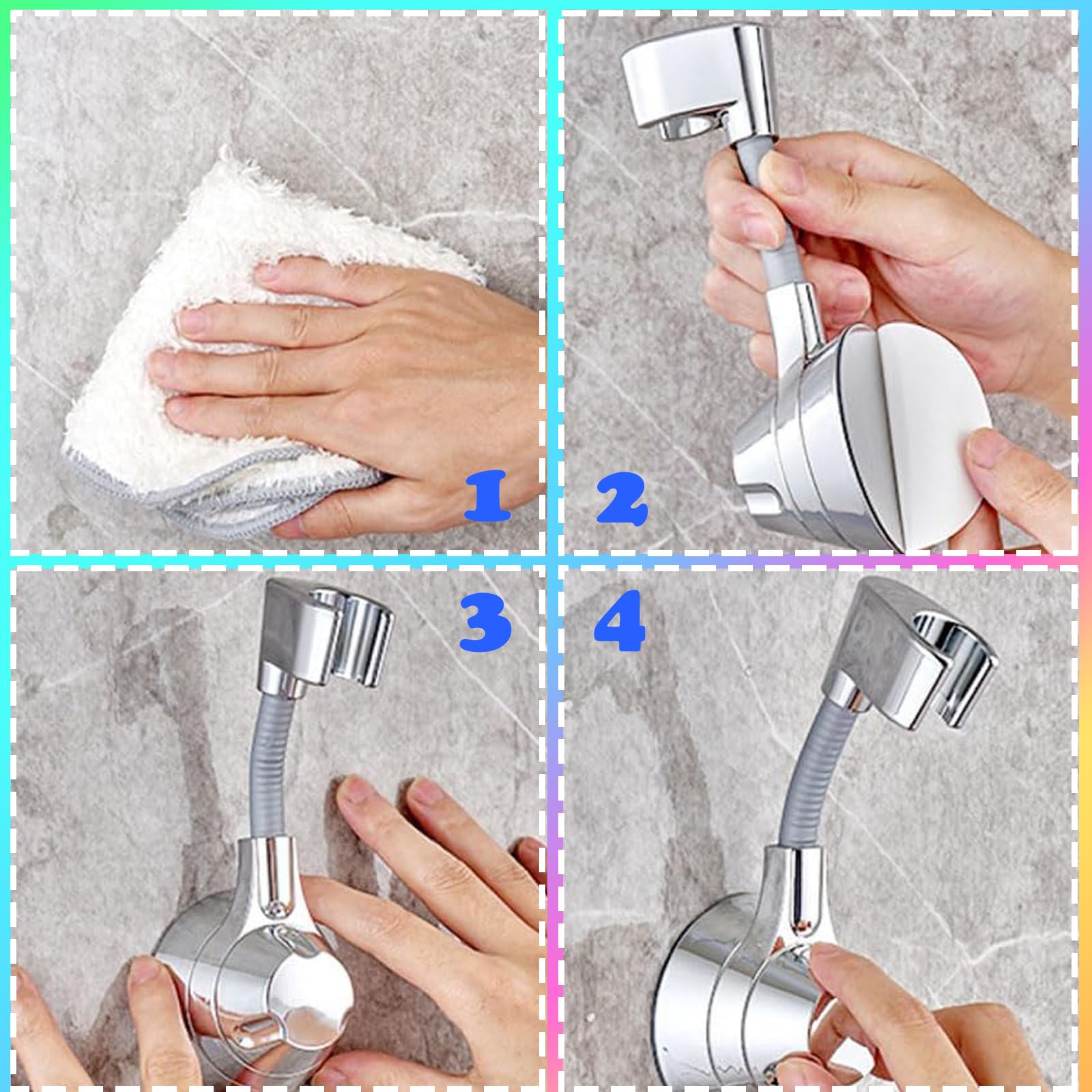 Endlich die perfekte Duschkopfhalterung - ganz ohne Bohren! Mit starkem Saugnapf und Klebetechnik haftet sie sicher auf glatten Fliesen, Glas oder Marmor! Einfach an der gewünschten Position anbringen - keine Werkzeuge nötig! Die 360° schwenkbare Halterung lässt sich in jedem Winkel positionieren - perfekt für Kinder, Erwachsene und sogar Haustiere! Hält bis zu 100 kg - absolut stabil und sicher! Das wasserdichte Design rostet nicht und beschädigt deine Wand nicht! Mit praktischen Haken für Badeschwämme oder Handtücher! Passt für die meisten handelsüblichen Duschköpfe und Spritzpistolen! Einfach zu reinigen und wiederverwendbar - wenn du umziehst, nimmst du sie einfach mit! Mach dein Badezimmer komfortabler ohne teure Installation! Einfach montieren und den perfekten Duschkomfort genießen!