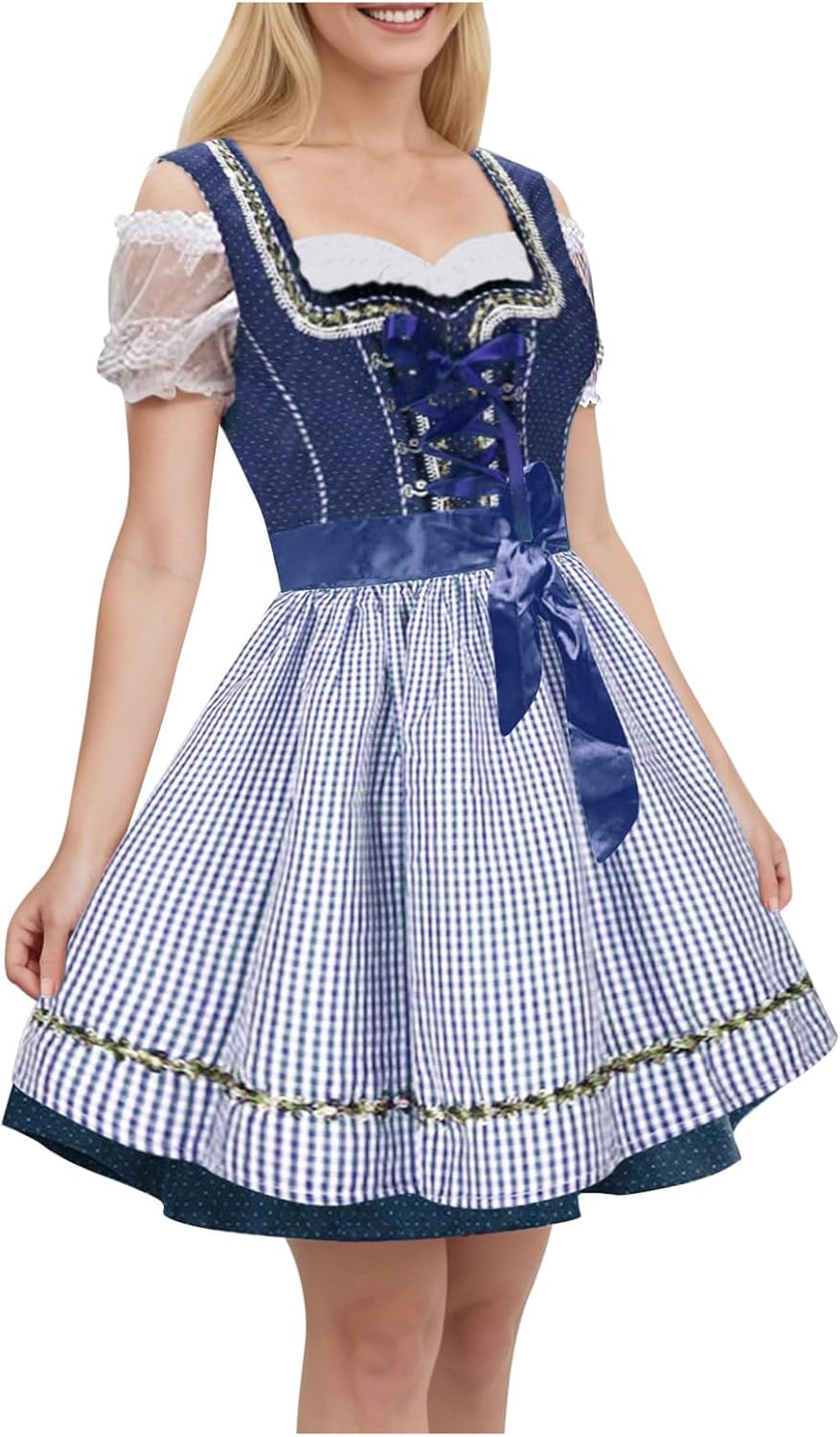 Prost! Suchst du das perfekte Dirndl fürs Oktoberfest? Unser Trachtenkleid-Set bringt bayerischen Charme und modernen Komfort in deinen Kleiderschrank! Das Komplettset enthält alles, was du brauchst: Das wunderschöne Midi-Dirndl, eine dekorative Schürze mit feiner Spitze und den charakteristischen Brustlatz. Aus atmungsaktiver Baumwolle oder hochwertigem Mischgewebe - super bequem auch bei längerem Tragen. Der figurbetonte Schnitt mit Taillennaht und dekorativem Dekolleté betont deine weibliche Silhouette perfekt. Und das Beste: Es gibt die Dirndl in großen Größen bis 5XL! Perfekt nicht nur fürs Oktoberfest, sondern auch für Trachtenhochzeiten, Stadtfeste oder andere besondere Anlässe. Einfach in der Maschine waschbar - praktisch nach dem Fest! Mit romantischen Spitzen-Details und wunderschöner Stickerei. Wähl deine Größe nach unserer Größentabelle und sei bereit für den nächsten Wiesn-Besuch! Traditioneller Charme meets moderner Tragekomfort!