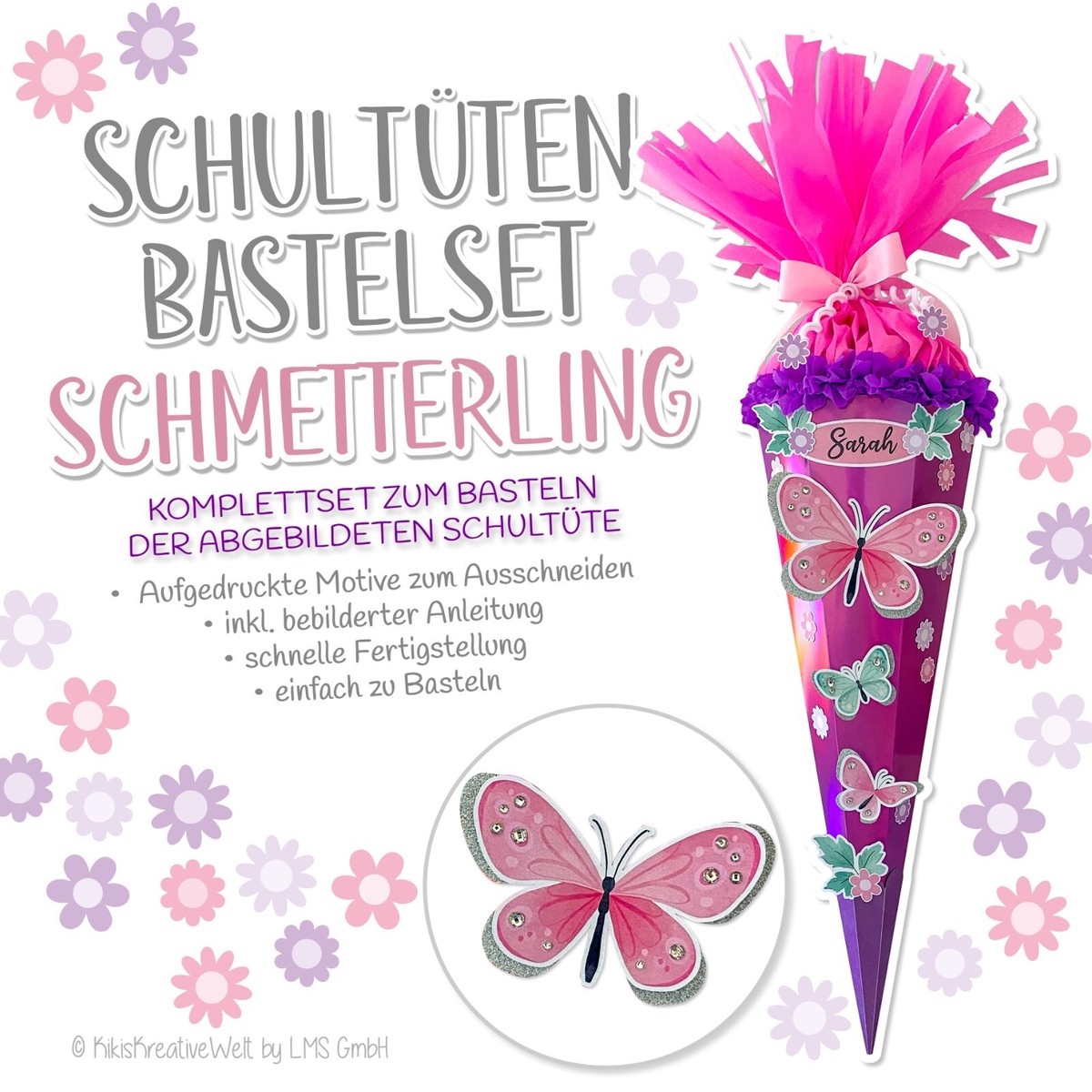 • Scinzene Schultüten Schleife Hellviolett Mit Schmetterling - Bastelset Für Einschulung