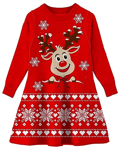 • Weihnachtskleid Damen Retro Mit Schneeflocken - Lang Mit Rundhals