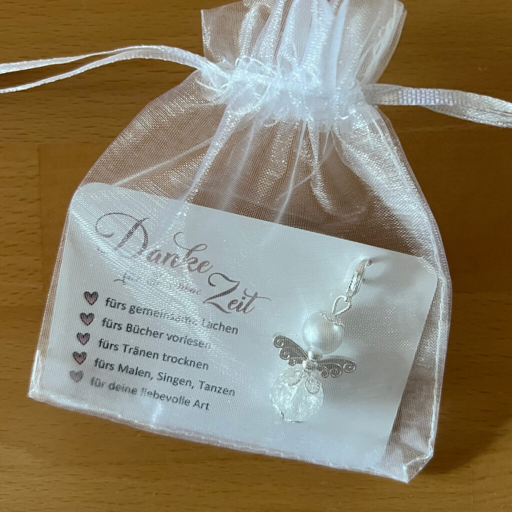Eine kleine Aufmerksamkeit mit großer Wirkung! Diese bezaubernde Danke-Karte mit dem Aufdruck 'Ich wollte einfach Danke sagen' und einem weißen Perlenengel mit silbernen Flügeln ist das perfekte Dankeschön für besondere Menschen. Die Karte im Format 8,5x5,5cm kommt mit einem süßen Engel-Anhänger (ca. 4,5cm groß), der die Karte noch persönlicher macht. Verpackt in einem zarten Organzasäckchen eignet sie sich ideal als kleines Geschenk zu Weihnachten, Geburtstagen oder einfach so, um Danke zu sagen. Ob für Freunde, Familie, Kollegen oder Nachbarn - diese Karte bringt deine Dankbarkeit charmant zum Ausdruck. Einfach, aber herzlich - manchmal sind es die kleinen Aufmerksamkeiten, die am meisten bedeuten. Fertig verpackt und sofort versandbereit - perfekt für alle, die schnell eine ansprechende Dankeskarte brauchen.