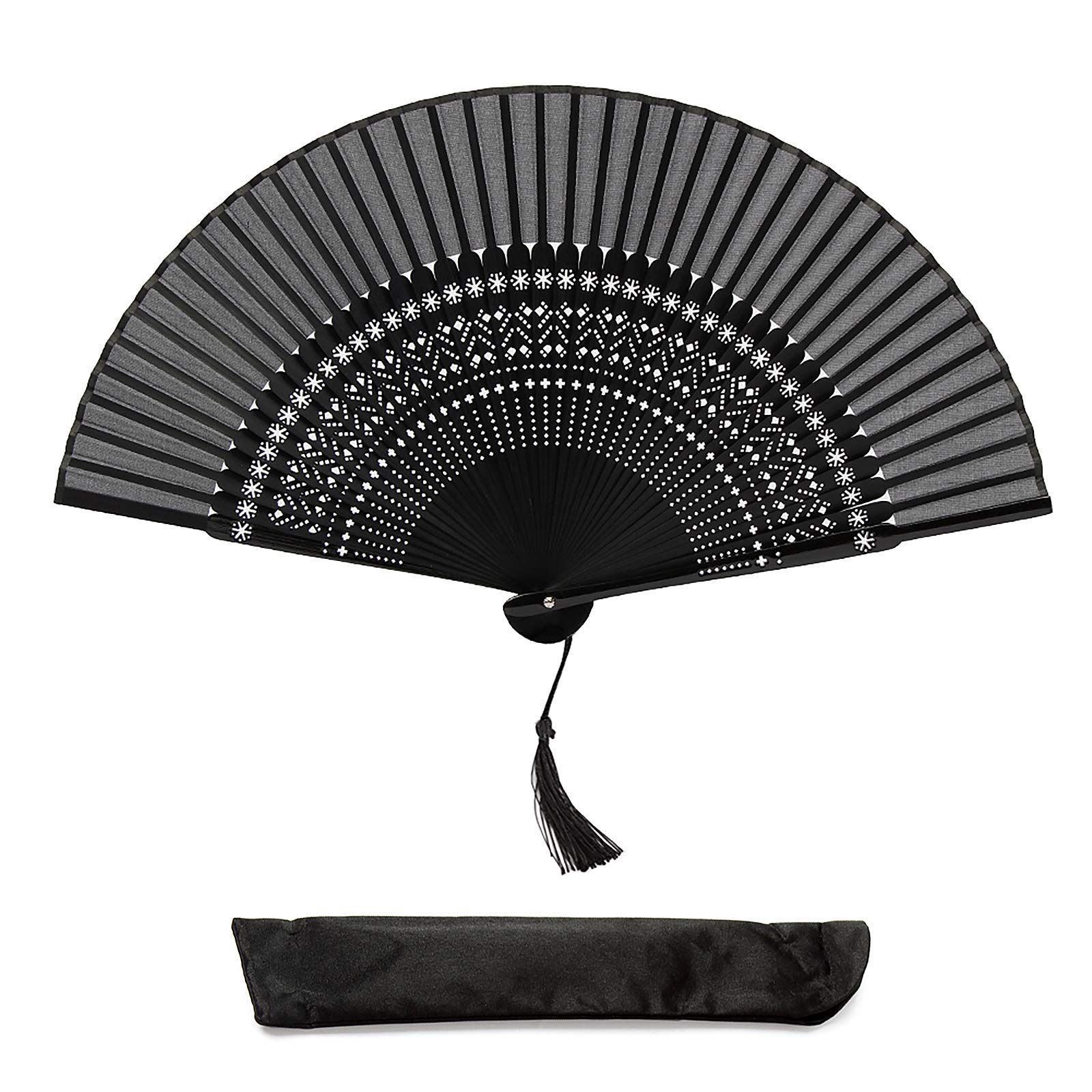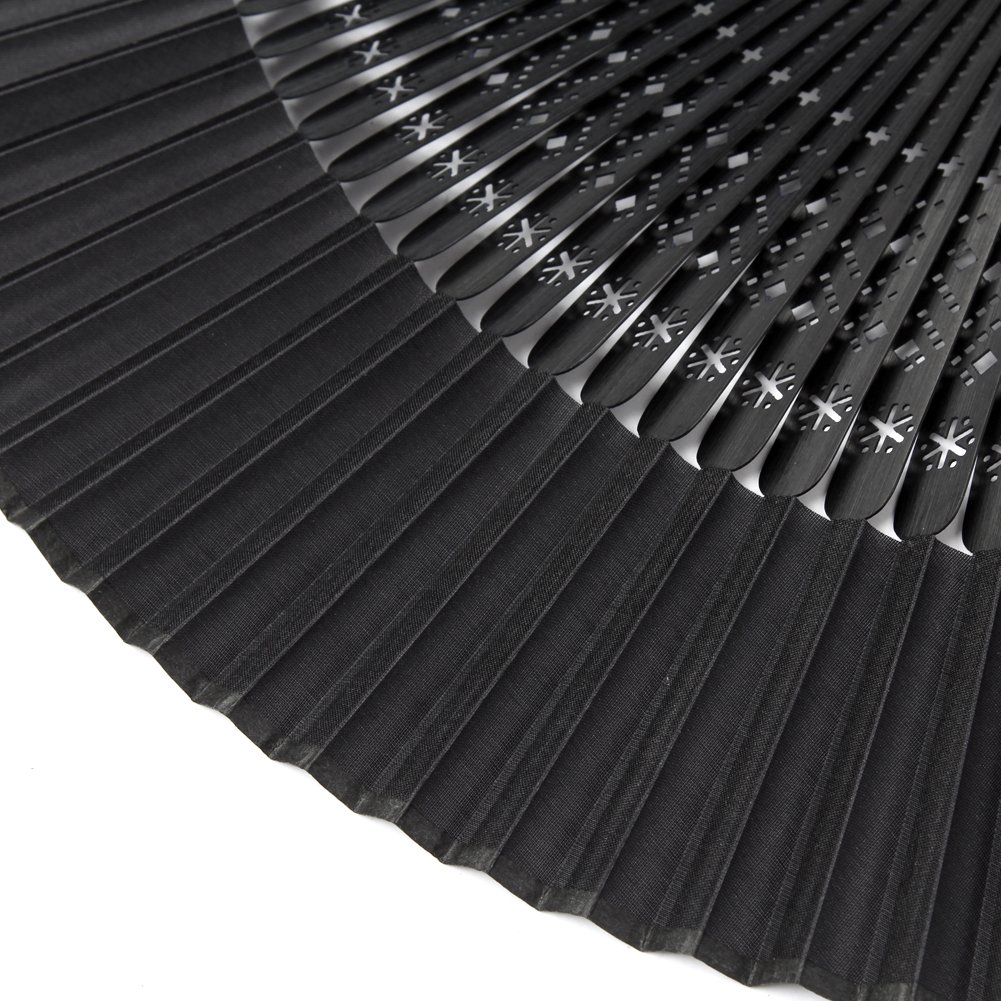 Dieser faltbare Bambus-Fächer ist einfach nur elegant! Mit Seidenstoff in verschiedenen schwarzen Motiven - Hohlkammer, Hohlschnecke, halbrund oder Krone. Nur 21x2,5x1,8 cm groß und 50 g leicht - passt in jede Handtasche. Perfekt für heiße Sommertage, Hochzeiten, Gartenpartys oder Cosplay. Kommt mit praktischer Schutzhülle - immer sicher verstaut. Einfach aufklappen und sofort angenehme Kühlung genießen. Auch super als Deko für Zuhause. Ein wunderschönes Geschenk für Frauen, Mädchen oder Freundinnen. Ob für Theater, Partys oder einfach mal was Besonderes - dieser Fächer macht immer was her!