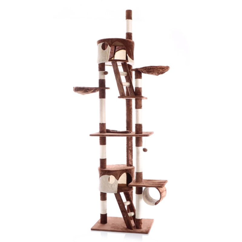 Deine Katzen langweilen sich? Dieser 170 cm hohe Kratzbaum von Wiltec wird sie begeistern! In schickem Schwarz passt er in jede Wohnung und bietet alles, was Stubentiger lieben: Drei große Aussichtsplattformen (29x29 cm), von denen aus sie ihr Reich überwachen können. Zwei gemütliche Häuschen mit 17-20 cm großen Öffnungen zum Verstecken und Schlafen. Und natürlich die Sisal-ummantelten Stämme zum Krallenwetzen - da gehen sie nicht mehr an deine Möbel! Besonders clever: Die Plattformen sind schwenkbar, sodass der Baum zwischen 50 und 60 cm breit eingestellt werden kann - perfekt für kleine Räume. Die stabile Bodenplatte (49x49 cm) sorgt dafür, dass auch wildes Herumtoben nichts ausmacht. Der weiche Stoffbezug lädt zum Kuscheln ein, und die zwei Trittbretter helfen beim Hochklettern. Wenn du mehrere Katzen hast, ist dieser Kratzbaum ideal - genug Platz für alle! Einfach aufbauen und zusehen, wie deine Katzen ihr neues Lieblingsplatz entdecken. Deine Möbel werden's dir danken!