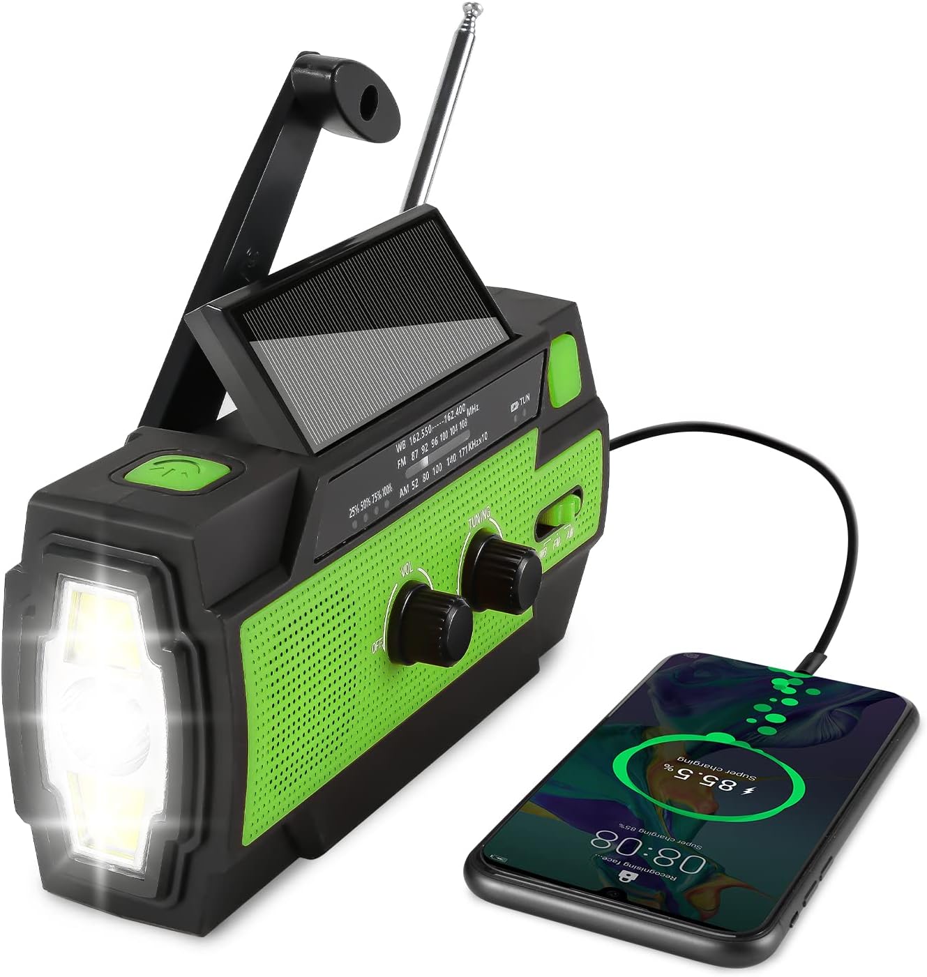 Das ultimative Notfallradio für jede Situation! Mit riesigem 20000mAh Akku - da kannst du nicht nur Radio hören, sondern auch dein Smartphone mehrmals aufladen. Drei Lademöglichkeiten: Solarpanel für sonnige Tage, Handkurbel für absolute Notfälle und USB-C für schnelles Laden zu Hause. Empfängt kristallklaren DAB+ und UKW Radio - bis zu 80 Sender speicherbar! Aber das ist noch nicht alles: SOS-Alarm für Notsituationen, superhelle Taschenlampe, Leselampe, Kompass und sogar Bluetooth 5.3 für Musikstreaming. IP53 spritzwassergeschützt - ideal für Camping, Wanderungen oder einfach als Vorsorge für Stromausfälle. Mit TF-Karten-Slot und AUX-Eingang für deine eigene Musik. Das Display zeigt alle Infos klar an und die Uhr mit Weckerfunktion ist auch dabei. Ob beim Angeln, im Garten oder im Krisenfall - mit diesem Radio bist du immer informiert und hast Strom. Perfektes Geschenk für Sicherheitsbewusste oder Outdoor-Fans! Einfach unverzichtbar in jeder Notfallausrüstung.