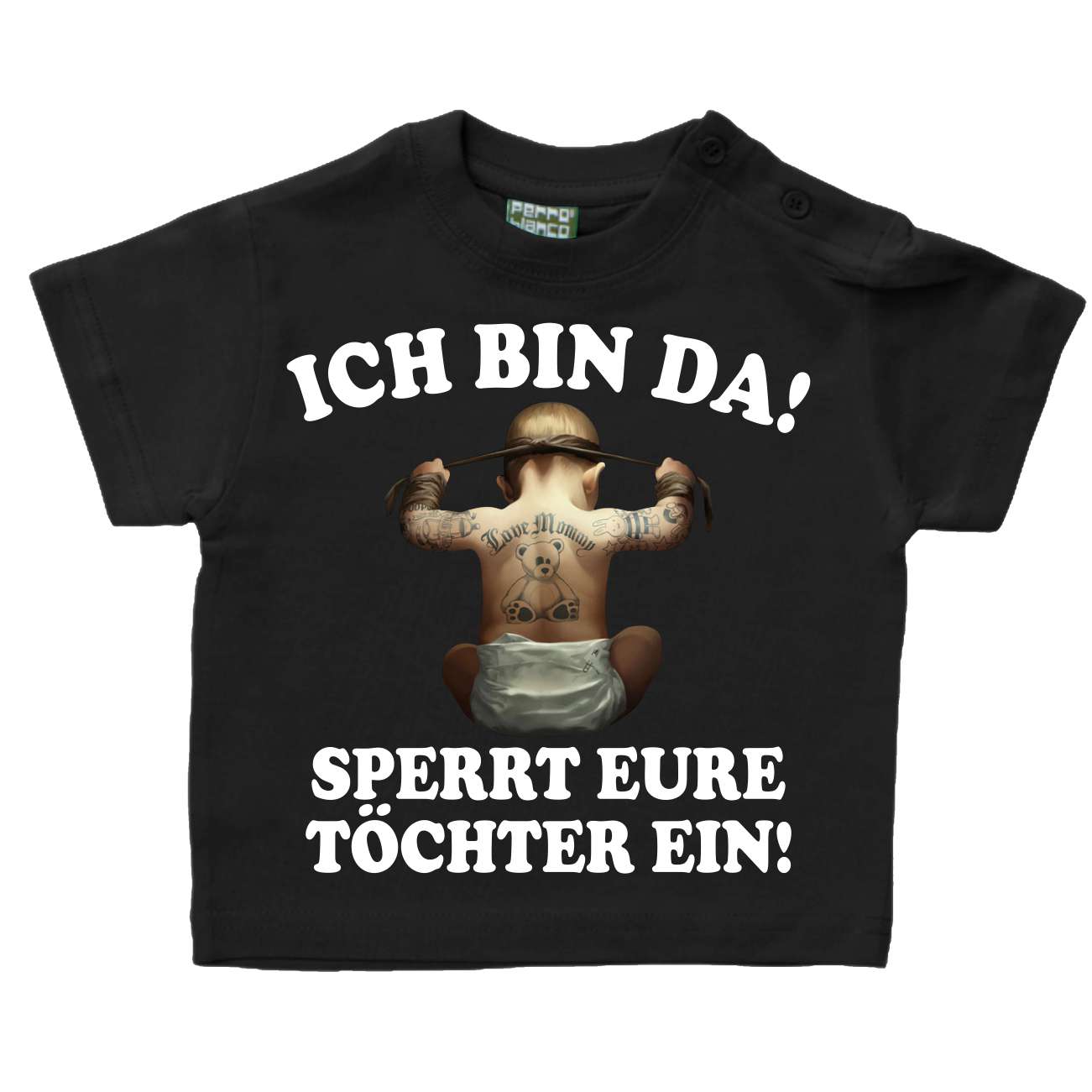 Dieser süße Baby-Body von Shirtracer ist ein echter Hingucker! Mit dem lustigen Spruch 'Ich bin da, sperrt eure Töchter ein' sorgt er für Schmunzler. Hergestellt aus 100 % gekämmter Bio-Baumwolle, ist er superweich und angenehm auf der Haut. Der Envelope-Halsausschnitt und die nickelfreien Druckknöpfe machen das An- und Ausziehen zum Kinderspiel. Perfekt für Jungen und Mädchen, die es auch an kühleren Tagen gemütlich haben wollen. Ein ideales Geschenk zur Geburt oder für den nächsten Kindergeburtstag – einfach waschen bei 30 °C und auf links bügeln, dann hält er lange.