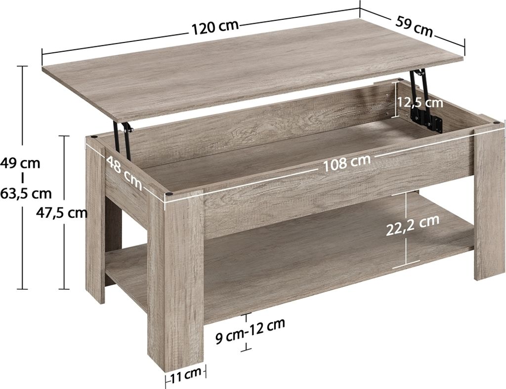 Wow, dieser Couchtisch kann echt was! 📦 Mit 100x98x65cm ist er nicht nur groß, sondern auch super praktisch. Die beiden Tischplatten lassen sich hydraulisch hochklappen - perfekt fürs Arbeiten am Laptop oder gemütliches Essen auf der Couch. Einfach hochheben und schon hast du einen Esstisch!