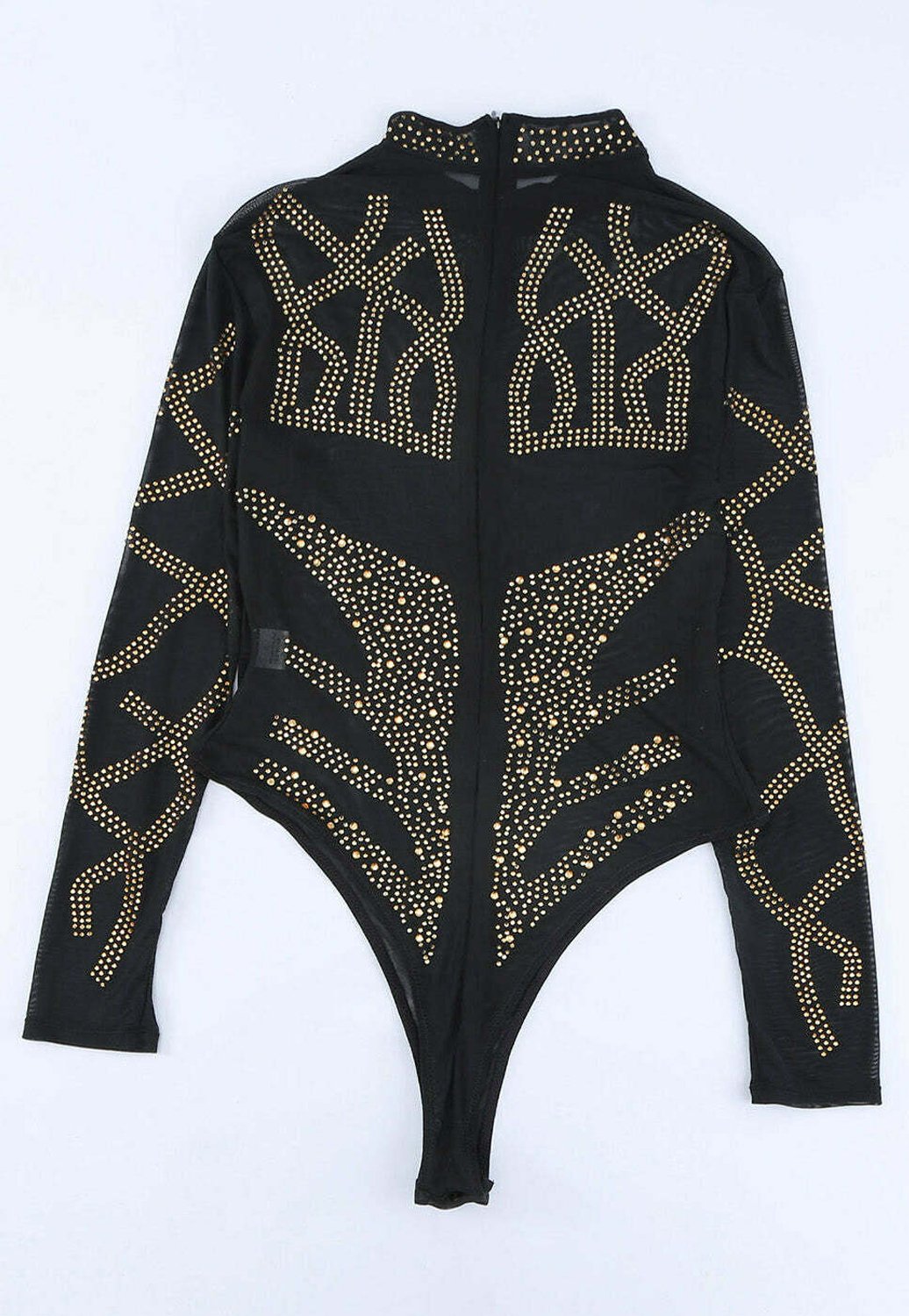 Dieser atemberaubende Body von SEBOWEL macht dich zur Königin jeder Party! Mit tausenden funkelnden Strass-Steinen und transparentem Netz-Stoff ist er ein absoluter Hingucker. Die romantischen Glockenärmel verleihen dir einen eleganten, femininen Look, während der hohe Stehkragen für einen modernen Touch sorgt. Aus 95% Polyester und 5% Spandex ist der Body angenehm dehnbar und passt sich deiner Figur perfekt an. Der praktische Knopfverschluss im Schritt macht das An- und Ausziehen einfach. Perfekt für Clubs, Partys, Konzerte oder besondere Anlässe wie Hochzeiten oder Dates. Kombiniere ihn mit High-Waist-Hosen, Röcken oder Lederhosen für verschiedene Looks - von sexy bis elegant. In Größen von S bis XXL erhältlich (bitte Größentabelle beachten!). Der Body ist figurbetont ohne einzuengen und gibt dir die Freiheit, dich zu bewegen und zu tanzen. Ein echter Allrounder für alle, die es glamourös und gleichzeitig bequem lieben. Handwäsche empfohlen, um die Strass-Steine lange funkeln zu lassen. Mach dich bereit für Komplimente!