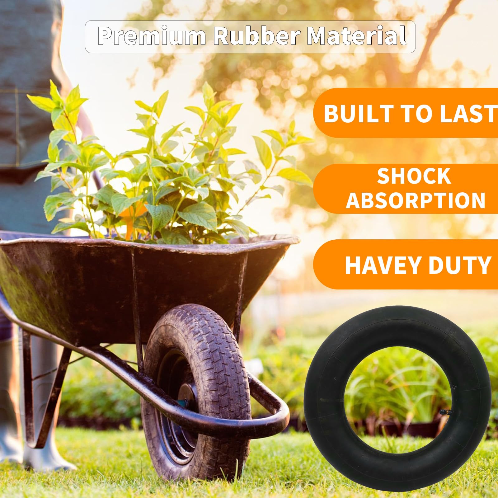 Platten Reifen? Damit ist jetzt Schluss! Diese zwei hochwertigen Schläuche in der Größe 3.50-8 passen perfekt für Schubkarren, Rasenmäher, Gartenkarren und viele andere Geräte. Das gebogene TR87 Ventil macht das Aufpumpen super einfach - kein Verknoten mehr! Hergestellt aus robustem Naturkautschuk halten diese Schläuche richtig was aus. Sie vertragen bis zu 30 PSI Druck - da kannst du richtig Power aufbauen! Kompatibel mit 3.50-8, 3.00-8, 3.5-8 und ähnlichen Größen. Egal ob du im Garten arbeitest, Baustelle hast oder einfach nur deine Geräte in Schuss halten willst - mit diesen Schläuchen bist du bestens ausgestattet. Einfach den alten Schlauch raus, neuen rein und weiter geht's! Spart Zeit und Geld gegenüber einem Fachmann. Auch perfekt für Generatoren, Schneefräsen und Hochdruckreiniger. Mit zwei Stück im Set hast du immer Ersatz parat!