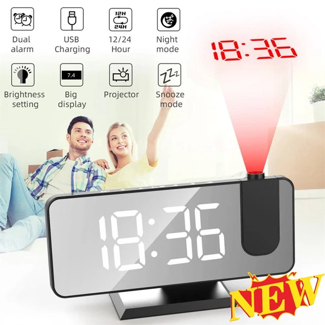 Wow, dieser Wecker projiziert die Zeit an die Decke! Perfekt für alle, die nachts nicht die Brille suchen wollen. Mit klarer LED-Projektion, die du in der Dunkelheit super lesen kannst. Der Winkel ist voll verstellbar - einfach die Projektionsschaukel drehen bis es passt. Zeigt dir nicht nur die Uhrzeit an, sondern auch die Raumtemperatur in °C oder °F. Das Besondere: Er spricht mit dir! 24/7 Sprachansagen für Temperatur und Zeit. Mit Musikalarm und 10-Minuten-Snooze-Funktion - ideal für Langschläfer. Nur 9x9x10,5 cm klein, passt auf jeden Nachttisch. Läuft mit 3 AA-Batterien oder per USB-Kabel. In schwarz oder weiß erhältlich. Einfach in der Bedienung mit praktischen Klick-Knöpfen. Macht das Aufstehen etwas erträglicher - versprochen!