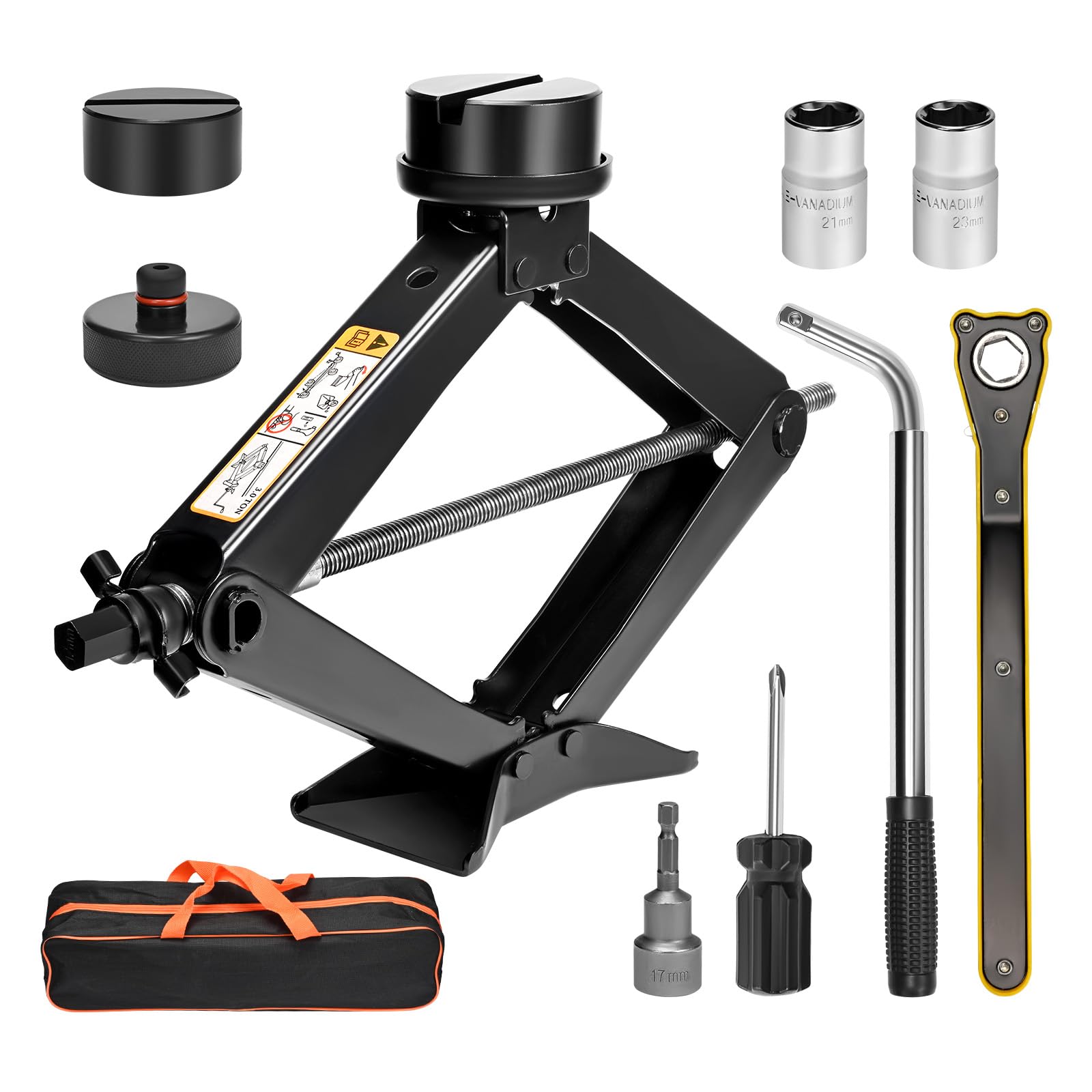 Panne? Kein Stress mit diesem Wagenheber-Set! Hält bis zu 3 Tonnen (3000kg) und hebt dein Auto von 10cm bis 43cm an - perfekt für niedrige Limousinen und hohe SUVs. Aus hochfestem Stahl, mega stabil. Inklusive zwei Gummiauflagen - eine universelle und eine speziell für Tesla! Komplettes Set dabei: Ratschenschlüssel, Stecknüsse in 17/19mm und 21/23mm, Handschuhe, Schraubendreher und Aufbewahrungstasche. Passt in jeden Kofferraum und ist immer griffbereit. Ob Reifenwechsel oder kleine Reparaturen - mit diesem Set bist du für jede Situation gewappnet. Egal ob Tesla Model S, 3, X, Y oder andere Autos - hier bist du safe!