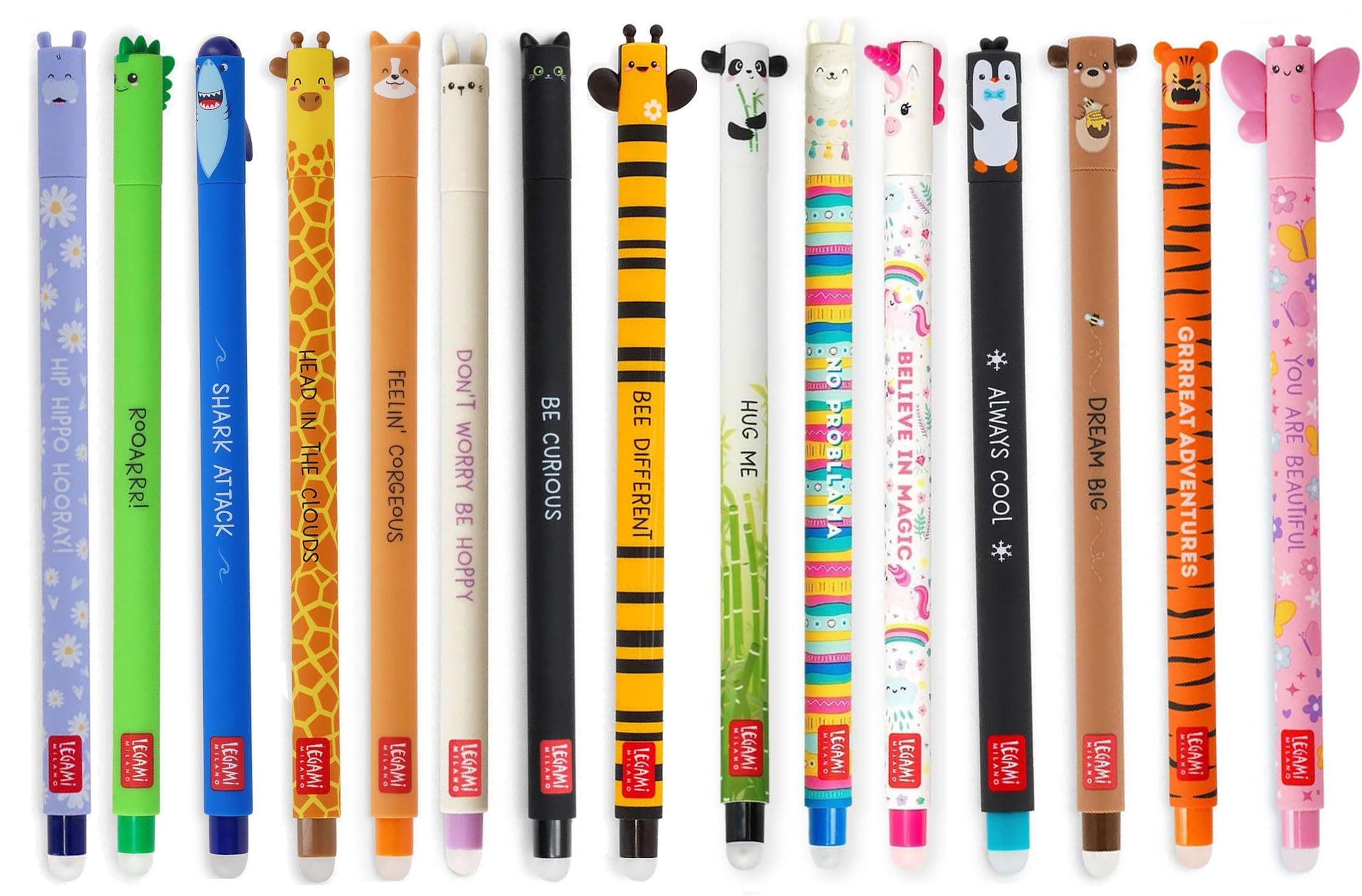Das 15er Set kommt mit total niedlichen Tier-Motiven, die jedem Schreibzeug sofort mehr Pep verleihen. Die 0,7mm Spitze schreibt super präzise und die Tinte trocknet blitzschnell - kein Verschmieren mehr!