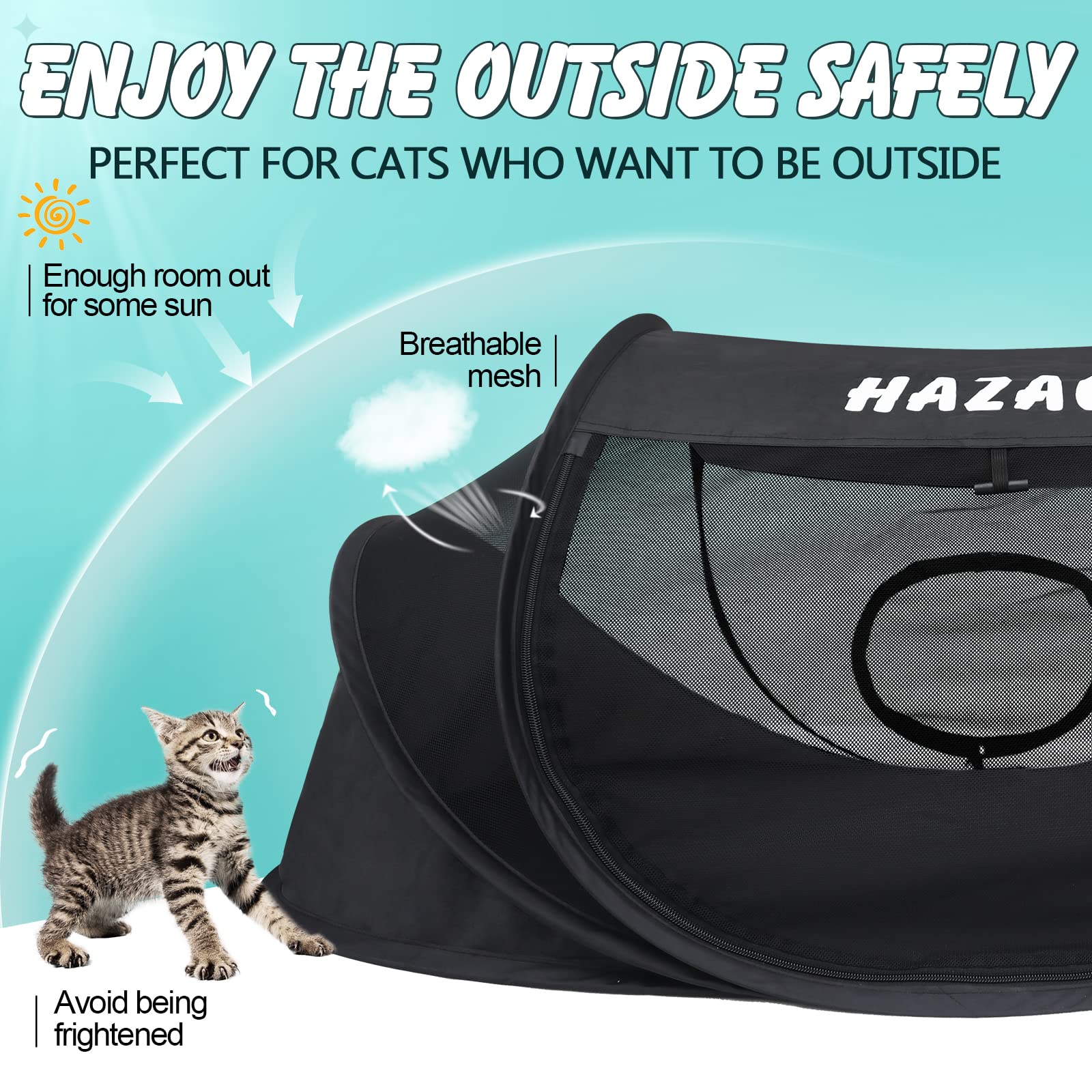 Deine Samtpfote wird dieses Katzenzelt lieben! Das multifunktionale Zelt mit Tunnel ist der ultimative Rückzugsort für deine Katze. Ob als gemütliches Schlafplatz, geschützte Höhle oder aufregender Spieltunnel - hier ist immer was los! Das beste: Es ist super tragbar und kann sowohl drinnen als auch draußen verwendet. Camping mit der Katze? Kein Problem! Das wasserdichte Oxford-Material hält auch mal eine Regendusche aus und ist super langlebig. Mit 84x40x38cm bietet es sogar größeren Katzen genug Platz zum Austoben und Entspannen.