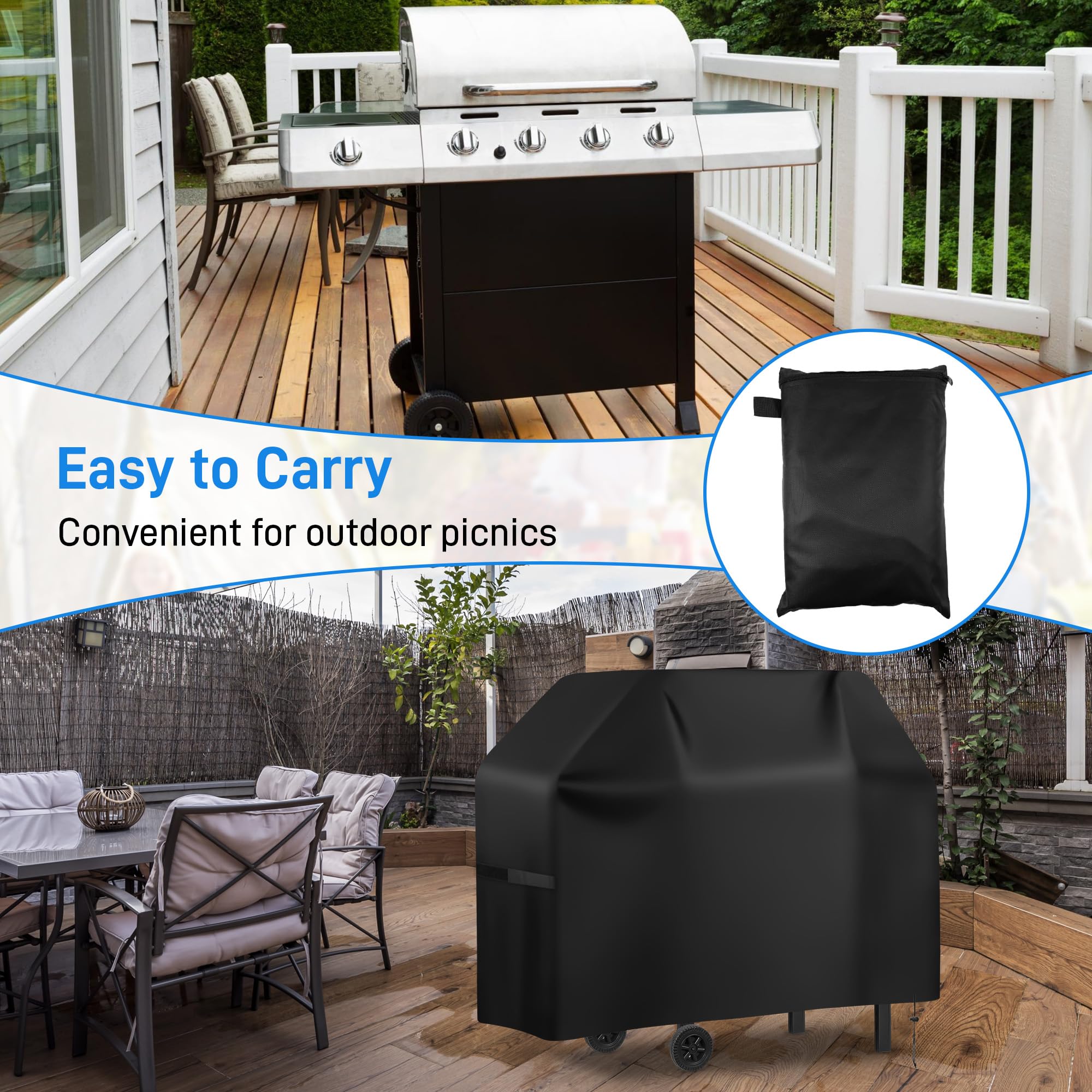 Dein Grill verdient den besten Schutz! Diese robuste Grillabdeckung aus 420D Oxford-Stoff mit Silberbeschichtung hält alles ab: Regen, Wind und schädliche UV-Strahlen. In zwei Größen erhältlich (145cm und 170cm) passt sie auf die meisten Gasgrills. Der elastische Rand mit verstärkten Nähten sorgt für perfekten Halt, auch bei starkem Wind. Super praktisch: Sie lässt sich leicht falten und platzsparend verstauen. Perfekt für Terrasse, Garten oder Camping-Ausflüge. Dein Grill bleibt trocken, sauber und einsatzbereit - egal welches Wetter kommt!