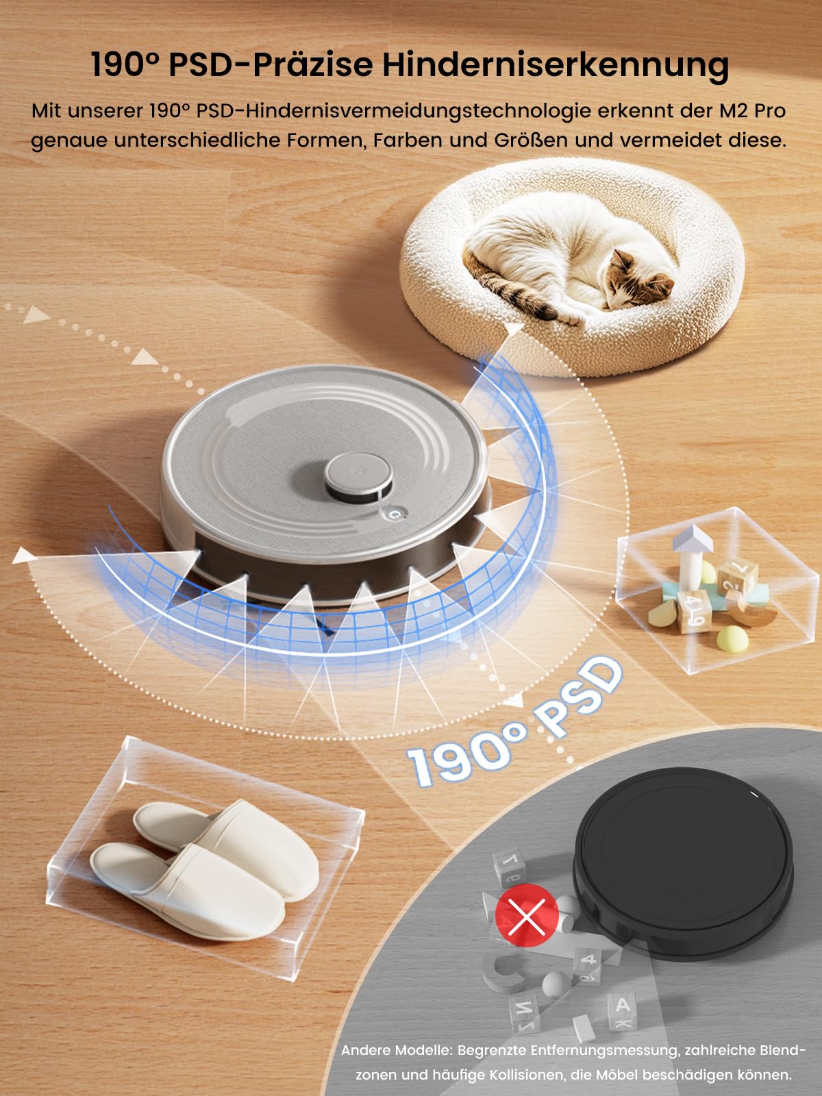 Der LEFANT M2 Pro ist dein neuer bester Freund im Haushalt! Mit 6000 Pa Saugkraft macht er kurzen Prozess mit Staub, Krümeln und Tierhaaren - egal ob auf Fliesen, Parkett oder Teppich. Die LiDAR-Navigation mit dToF-Technologie erstellt super genaue Karten von deiner Wohnung, sogar bei Dunkelheit. Besonders cool: Die Absaugstation! 45 Tage musst du den Staubbehälter nicht leeren - entweder beutellos oder mit optionalen Staubbeuteln für extra Hygiene. Und er wischt auch noch! Der elektrisch gesteuerte Wassertank gibt genau die richtige Menge Wasser ab, ohne dass es tropft. Über die App legst du Reinigungszonen fest oder startest ihn per Sprachbefehl mit Alexa. Nur 4 cm flach, kommt er unter alle Möbel und erkennt Hindernisse clever. Für Tierhalter ideal - leise und effektiv gegen Haare. Einfach zurücklehnen und den putzen lassen!