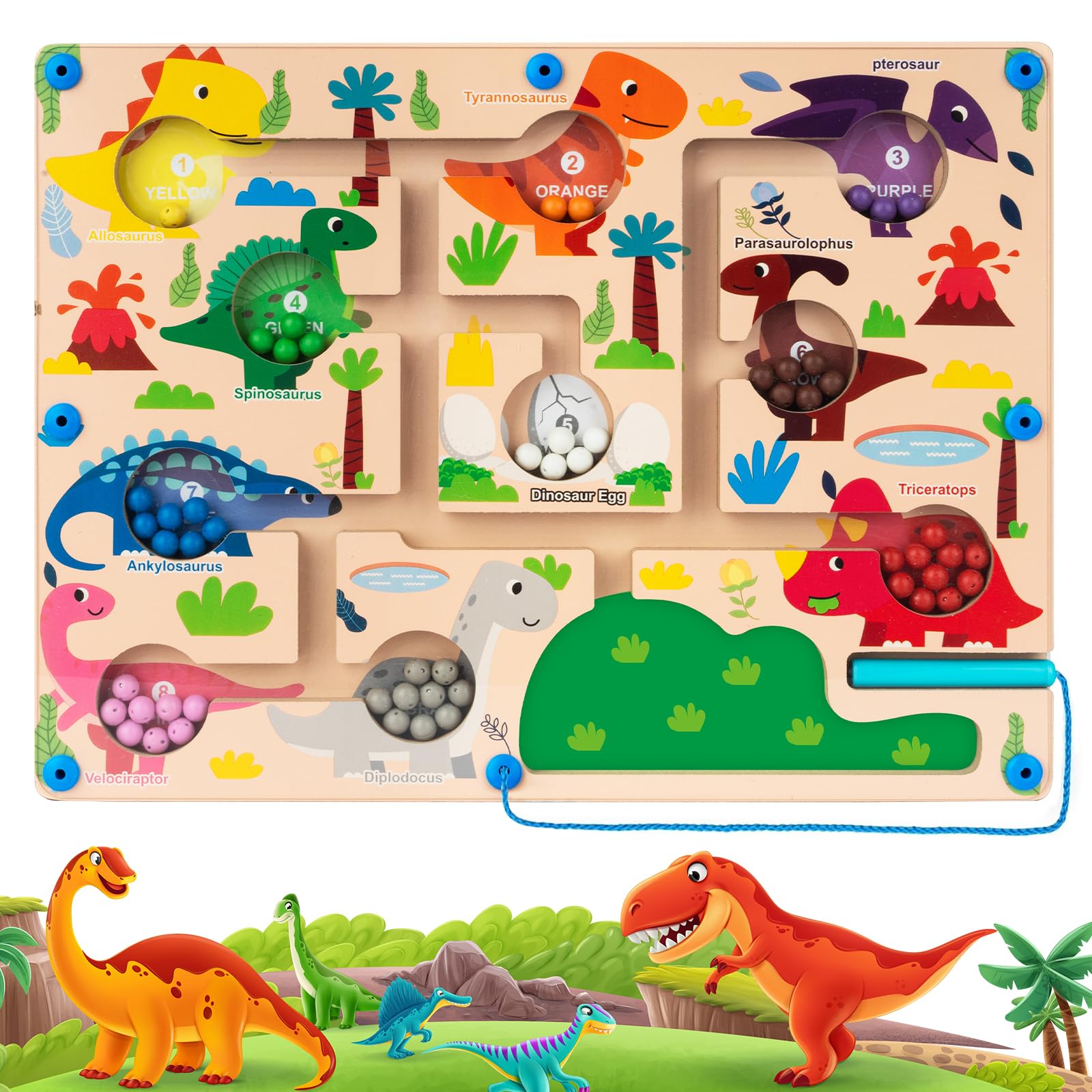Dieses AMSNINK Magnetspiel begeistert kleine Entdecker ab 2 Jahren! Im Dino-Design mit 10 magnetischen Figuren und 55 bunten Perlen fördert es spielerisch Farben- und Zahlenverständnis. Der Magnetstift trainiert die Feinmotorik, während die Kinder die Perlen durch das Labyrinth führen. Aus robustem, kindersicherem Material – perfekt für zu Hause oder unterwegs. Inspiriert von Montessori-Prinzipien, wächst das Spiel mit dem Kind: von ersten Farbexperimenten bis zum Zählen. Ein ideales Geschenk für Kleinkinder, das Lernen und Spielen verbindet!