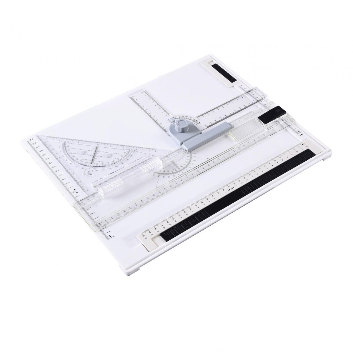 Perfekt für alle Zeichenfans! Dieses A4 Zeichenbrett ist dein mobiler Zeichenplatz. 37,8x30cm groß - passt in jede Tasche. Komplett-Set mit Schiebe-Geodreieck, Gleitlineal und drehbarem Quadrat. Aus robustem PP-Material - leicht aber stabil. Die lange gerade Kante ermöglicht präzise Linien bis zum Brettrand. Schlitze für smooth seitliche Bewegungen - super praktisch! Ideal für Ingenieure, Designer, Architektur-Studenten... einfach alle die gerne zeichnen. Macht technische Zeichnungen und Skizzen so viel einfacher. Einfach zusammenklappen und überall hin mitnehmen - Zeichen-Spaß wohin du gehst!