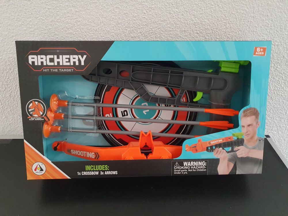 Mega cool für Kids! Diese Armbrust mit Zielscheibe bringt actionreichen Spaß für drinnen und draußen. Mit Infrarot-Sucher für genauere Schüsse - da treffen auch Anfänger gut! Die 4 Pfeile mit Saugnäpfen sind absolut ungefährlich und haften super an der Zielscheibe. Perfect für Schieß-Turniere mit Freunden - mindestens 2 Spieler können mitmachen. Armbrust ist 52cm lang, Zielscheibe hat 23,5cm Durchmesser - genau die richtige Größe für Kinderhände. Im Set dabei: Armbrust, Köcher, 4 Pfeile und Zielscheibe. Die bunte Verpackung macht's zum perfekten Geschenk für Geburtstage oder Weihnachten. Fördert die Konzentration und macht einfach irre Spaß! Aber Achtung: Immer unter Aufsicht von Erwachsenen spielen und nicht auf Menschen oder Tiere zielen!