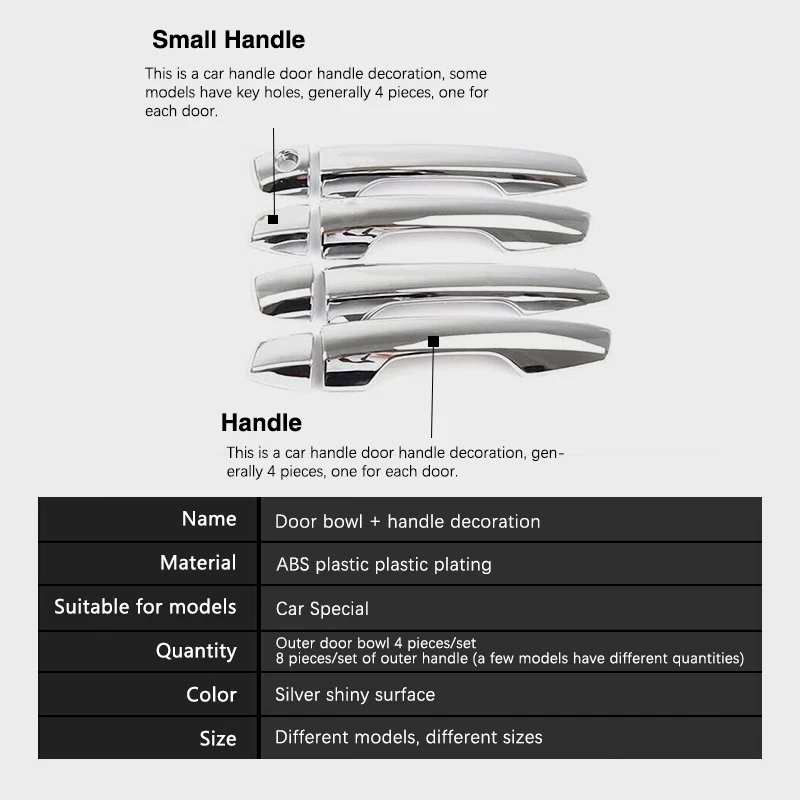Give your Mitsubishi Eclipse Cross that extra something! These sleek door handle covers in carbon chrome look absolutely fantastic and protect your original handles from scratches at the same time. Made from high-quality ABS plastic, they're durable, scratch-resistant and weatherproof. The self-adhesive backing makes installation a breeze - just clean the surface, peel off the protective film and press firmly. Perfect fit for Mitsubishi Eclipse Cross models from 2018 to 2021. Not only do they look great, but they also protect your door handles from damage caused by nails, rings or keys. The precise fit ensures they won't affect the functionality of your door handles. Easy to clean and maintain. Give your car that personalized touch without breaking the bank! Installation takes just minutes and requires no special tools. Make your Eclipse Cross stand out from the crowd!