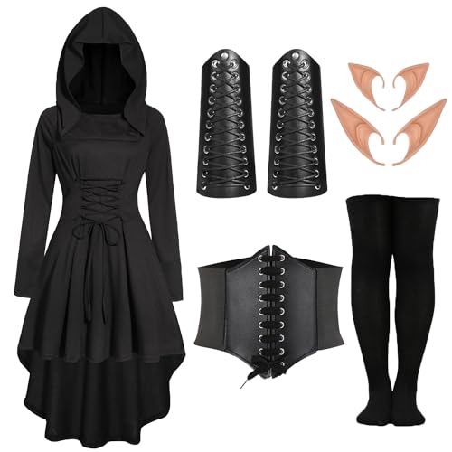Halloween Kostüm Damen Mittelalter Gothic - Kurzes Hexenkostüm Für Karneval & Cosplay