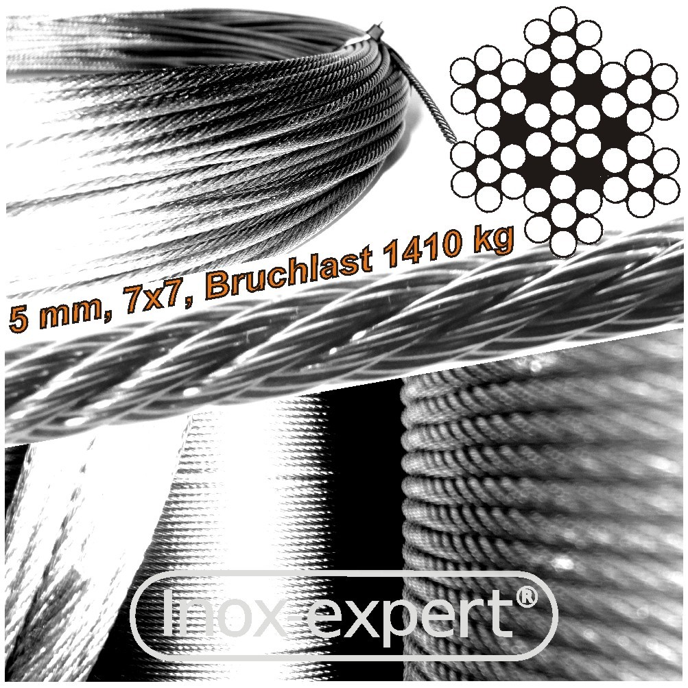 Mega robustes Edelstahlseil für anspruchsvolle Einsätze! Das 7x7 geflochtene Seil ist mittelweich und super flexibel. Mit 6mm Durchmesser und 5m Länge perfekt für Boote, Geländer oder Industrieanwendungen. Aus hochwertigem A4 Edelstahl V4A - absolut rostfrei, säurebeständig und salzwasserfest! Zugfestigkeit von 1570 N/mm² - das hält echt was aus. Passt zu Alu-, Edelstahl- oder Kupferklemmen. Wird auf Rolle geliefert, wenn du die ganze Länge nimmst. Egal ob fürs Segeln, Bauen oder Heimwerken - dieses Seil ist ein echter Allrounder!