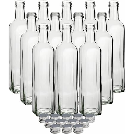 Du machst gerne eigene Säfte, Smoothies oder Dressings und suchst nach passenden Behältern? Dieses 20er-Set Glasflaschen ist genau das Richtige für dich! Jede Flasche fasst 500 ml und ist aus stabilem Klarglas gefertigt - perfekt also, um deine selbstgemachten Kreationen aufzubewahren oder zu verschenken. Der goldfarbene Schraubdeckel (TO43) schließt sicher und luftdicht, sodass nichts ausläuft oder verdirbt. Dank der großen Öffnung lassen sich die Flaschen leicht befüllen und reinigen - sogar spülmaschinenfest sind sie! Ob für Limonade, Sirup, Öl, Essig oder als hübsche Mini-Vase: Die Flaschen sind vielseitig einsetzbar und sehen dabei noch richtig gut aus. Ein nachhaltiger Begleiter für deine Küche, der Plastikmüll spart und deine DIY-Projekte aufwertet. Einfach befüllen, verschrauben und genießen!