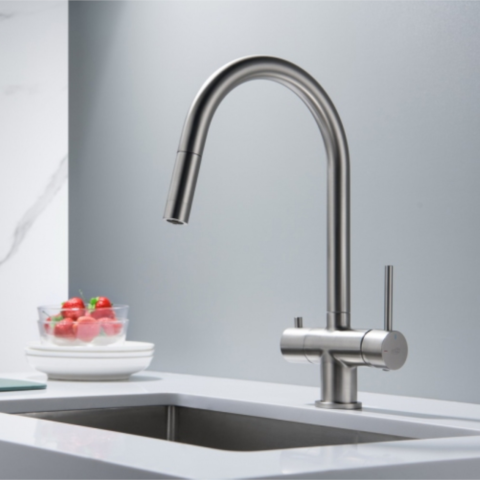 Boah, dieser Wasserhahn macht deine Küche zum echten Hingucker! Der ausziehbare Sprühkopf ist superpraktisch - einfach rausziehen und schon kannst du auch die hintersten Ecken vom Spülbecken erreichen.
