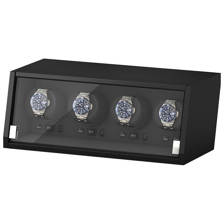 Hey, hast du mehrere Automatikuhren und willst sie alle perfekt in Schuss halten? Der BOXY CLASSIC Uhrenbeweger ist genau das Richtige für dich! Dieses coole modulare System kommt mit 4 einzelnen Beweger-Modulen - perfekt für deine Sammlung. Was ich besonders praktisch finde: Die programmierbaren Motoren laufen sowohl rechts als auch links rum, mit 672, 960 oder 1248 Umdrehungen pro Tag. So bleiben deine Uhren immer aufgezogen und bereit zum Tragen. Das Ganze ist super erweiterbar - die Power Station kann bis zu 12 Beweger versorgen! Maße sind 40x11x13 cm, das Gewicht von 4 kg gibt dem Teil einen soliden Stand. Egal ob du im Urlaub bist oder die Uhren einfach nur gut präsentieren willst - mit dem BOXY CLASSIC machst du nichts verkehrt. Übrigens: Das Netzteil funktioniert weltweit mit 110-230 Volt, also perfekt für unterwegs!