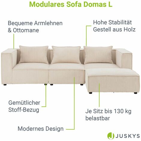 Ultimative Entspannung pur! Dieses modulare 3-Sitzer Sofa aus weichem Cordstoff kommt komplett montiert - einfach auspacken und loslegen. Inklusive 3 Ottomanen für flexible Aufstellung. Der 32D-Schaumstoff sorgt für maximalen Komfort, die verstellbare Rückenlehne passt sich dir an. Rutschfeste Unterseite für sicheren Stand. Nach dem Auspacken brauchen die Polster 2-7 Tage zur vollen Entfaltung. Perfekt fürs Wohnzimmer, Homeoffice oder Entertainment-Bereich. Einfach positionieren und den Wohlfühl-Faktor genießen!