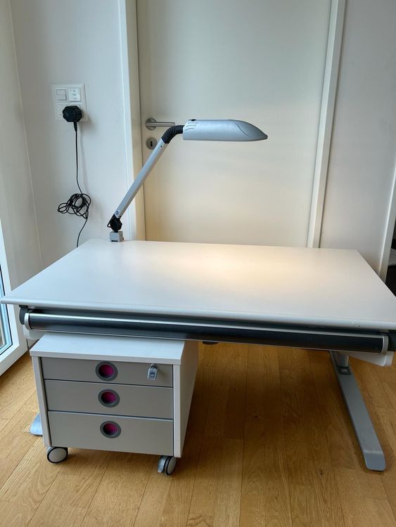 Der perfekte Begleiter für die gesamte Schulzeit! Der moll Winner Comfort wächst einfach mit - von 53cm bis 82cm Höhenverstellung passt er sich perfekt an dein Kind an. Die Tischplatte lässt sich stufenlos neigen, sodass immer die optimale Arbeitsposition möglich ist. Besonders praktisch: Die federunterstützte Verstellung macht das Ändern der Neigung super einfach. Die melaminharzbeschichtete Platte ist extrem kratzfest und leicht zu reinigen. Die abgerundeten Ecken sorgen für mehr Sicherheit, während die Rollen an den Kufen das Verschieben zum Kinderspiel machen. Made in Germany mit GS-Zeichen für geprüfte Sicherheit. Ob Hausaufgaben, Malen oder Lernen - mit diesem Schreibtisch macht alles gleich doppelt so viel Spaß. Ein Investment, das sich über viele Jahre lohnt und die Gesundheit deines Kindes fördert!