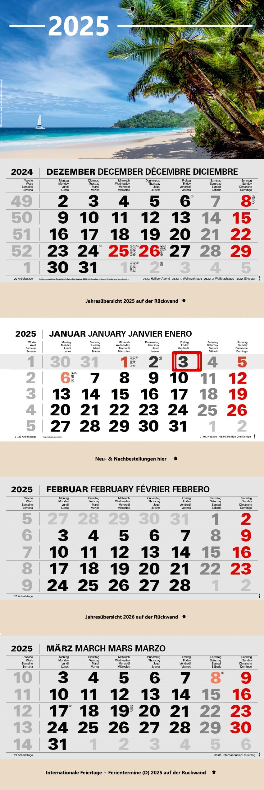 TOBJA 4-Monatskalender 2026 Wandkalender - 30x59cm FSC Mit Datums-Schieber