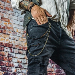 Verleihe deinem Outfit den ultimativen Edge! Diese coole Punk-Hosenkette mit elegantem Mond-Anhänger ist perfekt für alle, die ihren Style individuell gestalten wollen. Aus hochwertiger, rostfreier Legierung gefertigt, ist sie langlebig und verblasst nicht. Mit 40cm Gesamtlänge passt sie ideal an Jeans, Shorts oder Röcke. Der Karabiner-Verschluss macht das Anbringen zum Kinderspiel - einfach an den Gürtel oder die Hosentasche klicken und fertig. Vielseitig einsetzbar: Als Hosenkette, Schlüsselanhänger oder Taschenkette. Perfekt für die Gothic-, Hip-Hop- oder Grunge-Szene. Ob auf Festivals, Konzerten, Partys oder im Alltag - dieser Eyecatcher sorgt für Aufmerksamkeit. Das mehrlagige Design und der 3cm große Mond-Anhänger verleihen jedem Outfit eine rockige Note. Einfach mit feuchtem Tuch abwischen und trocken lagern - so bleibt die Kette lange schön. Der perfekte Accessoire für alle, die sich nicht in Mainstream-Fashion verlieren wollen!