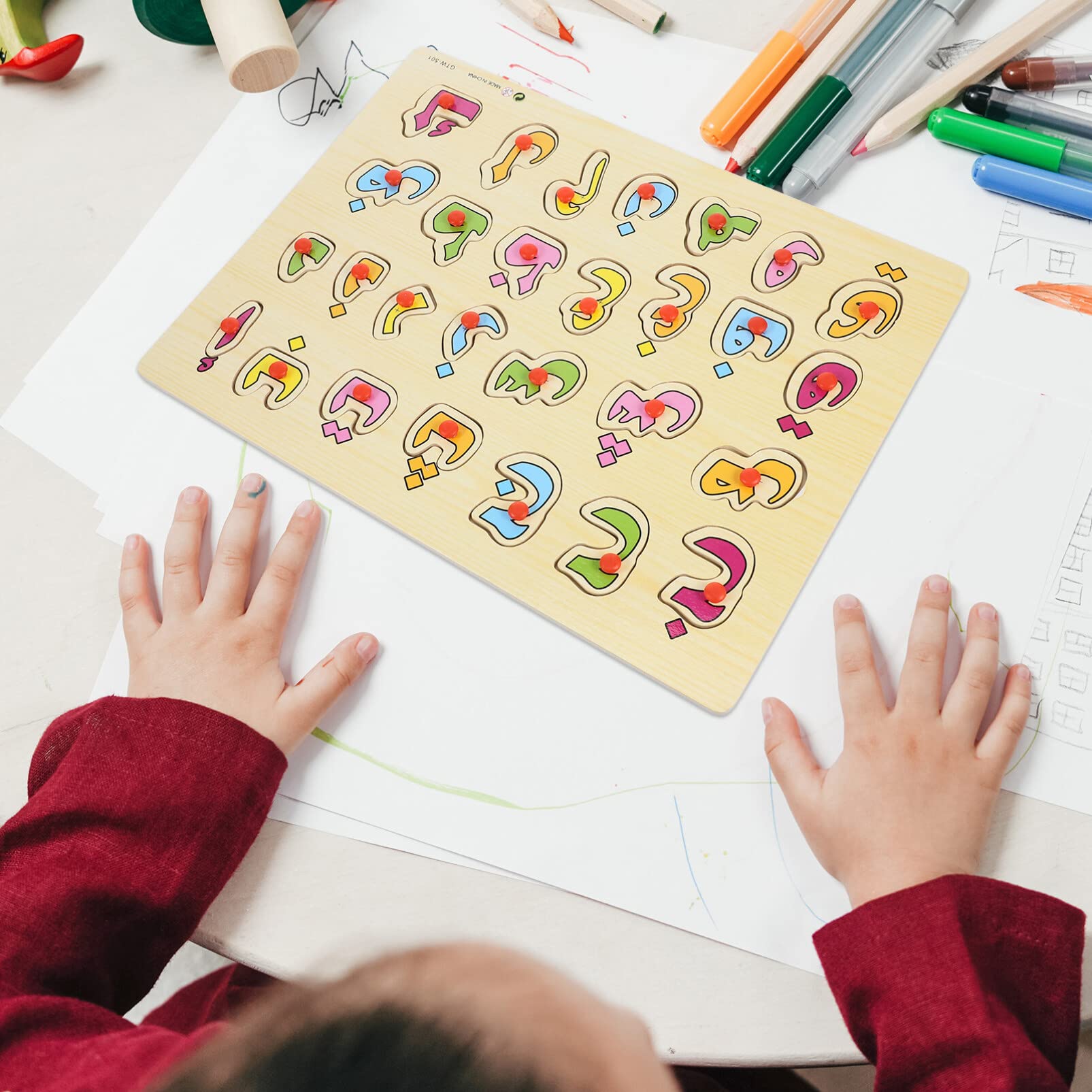 Spielerisch lernen war noch nie so schön! Dieses Holzpuzzle mit arabischen Zahlen und Buchstaben fördert die kognitive Entwicklung deines Kindes. In bunten Farben und kindgerechter Größe (30x22,5x1 cm) perfekt für kleine Hände.\\n\\nNach Montessori-Prinzipien entwickelt, unterstützt es die Auge-Hand-Koordination, Farbwahrnehmung und logisches Denken. Die glatten Holzstecker sind einfach zu greifen und in die passenden Aussparungen zu stecken.\\n\\nIdeal für Kinder ab 3 Jahren - sie lernen spielerisch Zahlen und Buchstaben erkennen und zuordnen. Die kräftigen Farben bleiben lange erhalten und ziehen die Aufmerksamkeit der Kleinen magisch an.\\n\\nPerfekt für zu Hause, Kindergarten oder Vorschule. Ein pädagogisch wertvolles Geschenk, das nicht nur Spaß macht, sondern auch die Entwicklung fördert. Aus robustem Holz für langanhaltenden Spielspaß!