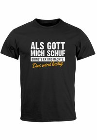 Alter, dieses Tanktop ist mal was Anderes! Der Spruch 'Als Gott mich schuf grinste er und dachte das wird lustig' ist einfach genial - voll Ironie und Sarkasmus. Aus 100% Baumwolle, super weich und im Slim Fit geschnitten. Perfekt für Partys, Sommerfeste oder einfach als lässiges Alltags-Shirt. Die Qualität ist top, der Druck hält ewig und die Passform sitzt einfach perfekt. Es gibt's in allen Größen von XS bis XXL. Ein richtiger Eye-Catcher, der garantiert für Gespräche sorgt. Ideal als Geschenk für den besten Kumpel oder einfach für dich selbst - Hauptsache nicht langweilig!