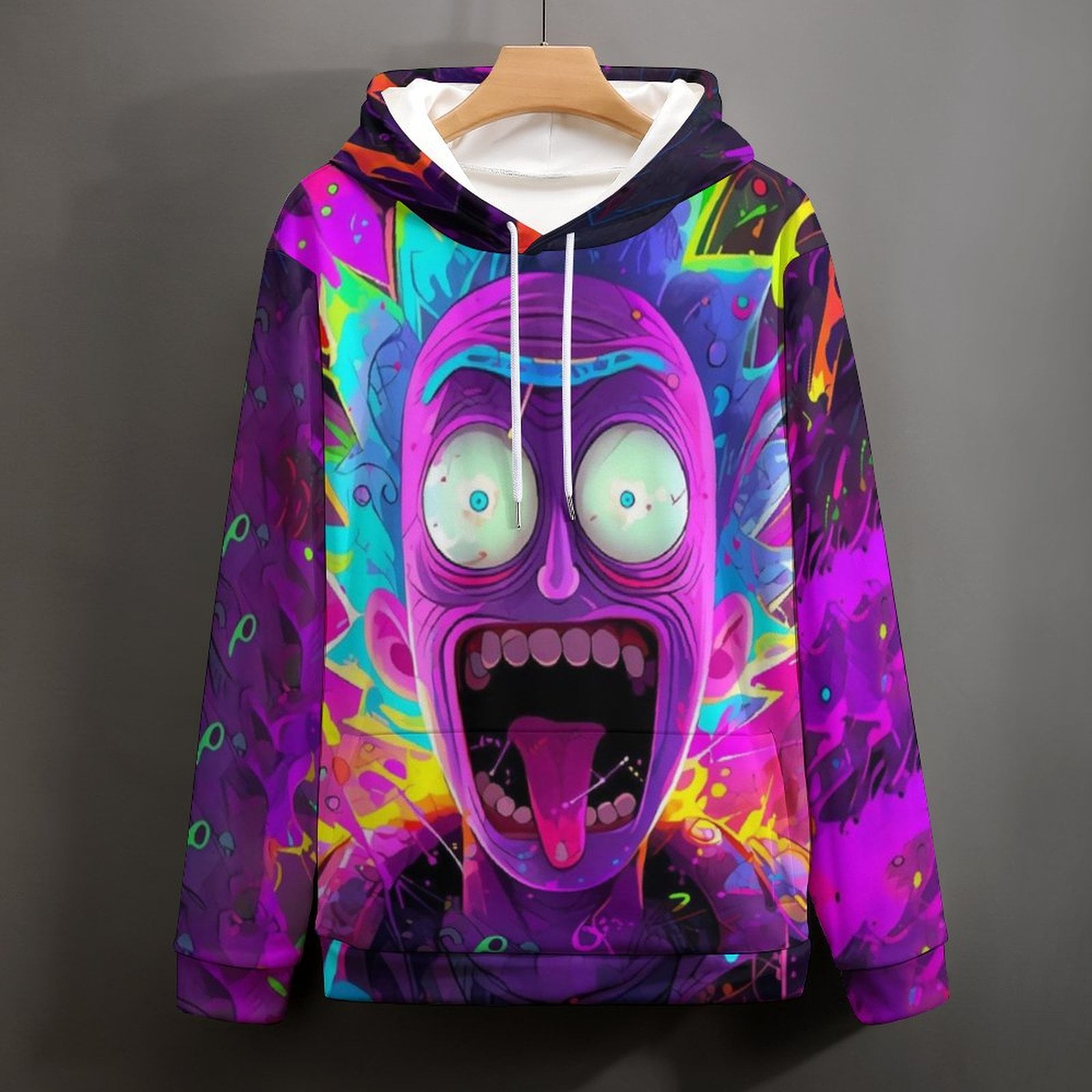 Alter, dieser Rick and Morty Hoodie ist ja mal der absolute Hammer! Zeig allen, dass du ein echter Fan der verrückten Serie bist mit diesem ultra-coolen \Get Schwifty\-Design. Perfekt für alle, die Ricks respektlosen Humor und die komplett durchgeknallten Abenteuer lieben!\n\nDer Hoodie ist aus richtig gutem 8.5 oz Material gemacht - nicht zu dick, nicht zu dünn, einfach perfekt. Klassischer Schnitt, doppelt genähter Saum, hält also ewig. Egal ob du auf dem Sofa chillst, zu einer Convention gehst oder einfach nur in der Stadt unterwegs bist - mit diesem Pullover ziehst du garantiert Blicke auf dich!\n\nDas Design fängt total gut die irre Energie von Rick ein. Jeder, der die Serie kennt, wird sofort checken, dass du was drauf hast. Und die, die's nicht kennen... na, deren Problem! \n\nSuper bequem, mega stylisch und ein echter Hingucker. Ob für dich selbst oder als Geschenk für andere Rick and Morty-Fans - damit machst du alles richtig. Einfach anziehen und ab in die nächste Dimension! Wubba Lubba Dub Dub!