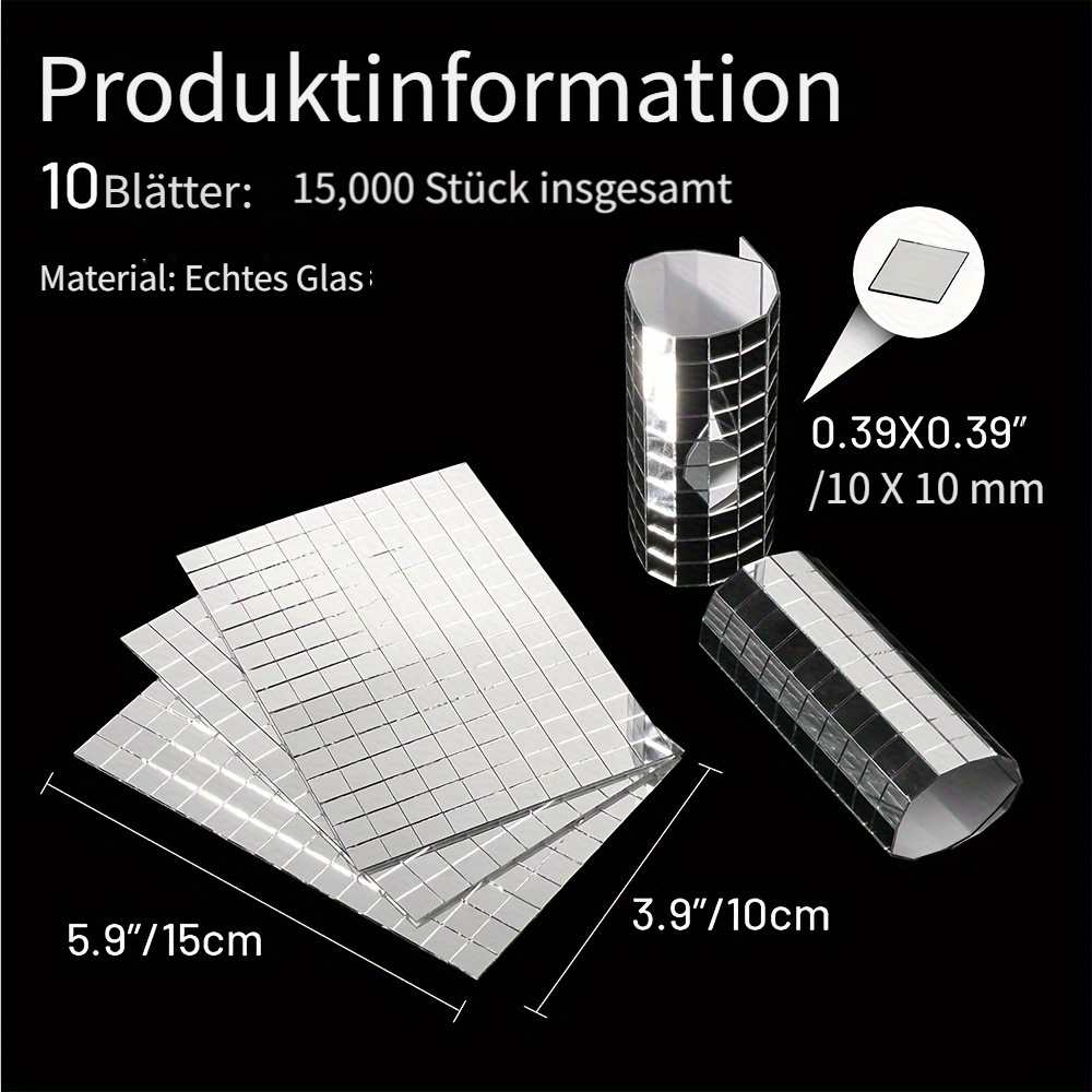 Willst du deinem Zuhause einen glitzernden Touch verleihen? Diese 6400 selbstklebenden Spiegel Mosaik Fliesen sind perfekt dafür! Jedes Quadrat misst 5x5mm bei 1mm Stärke - ideal für feine Details und aufwändige Muster. Aus hochwertigem Glas mit spiegelnder Silber-Oberfläche, die Licht in einzigartigen Mustern reflektiert. Die starke Selbstklebeschicht macht die Anwendung super einfach: Schutzpapier abziehen, positionieren und festdrücken. Ohne Werkzeug oder zusätzlichen Kleber! Perfekt für Badezimmer, Hotels oder DIY-Projekte. Du kannst damit komplette Disco-Kugeln gestalten, Möbel verzieren oder Akzente setzen. Das Set enthält 4 Rollen mit insgesamt 6400 Stück - genug für große Flächen. Auch für Kerzenhalter, Schminktische oder künstlerische Projekte geeignet. Die Fliesen lassen sich rückstandslos entfernen, falls du mal was ändern willst. Verleihe jedem Raum eine luxuriöse, glänzende Atmosphäre!