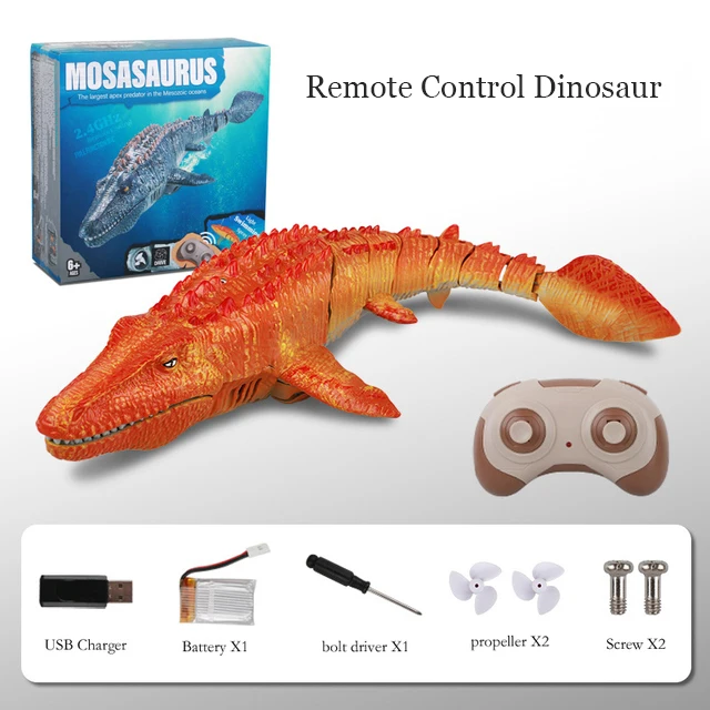 Vorsicht, Urzeit-Alarm! Dieses ferngesteuerte Mosasaurus-Boot bringt Action in jeden Pool oder See. Mit stromlinienförmigem Körper und mehrgelenkiger Schwanzflosse schwimmt es wie ein echtes Urzeit-Ungeheuer durchs Wasser. Die coolen LED-Lichter und die Wassersprüh-Funktion machen es noch realistischer - auch nachts ein absoluter Hingucker! Mit 2,4 GHz Fernsteuerung, die komplett wasserdicht ist (falls mal ins Wasser fällt). Der Akku hält bis zu 25 Minuten und lädt in 80 Minuten wieder voll auf. Perfekt für Kinder ab 6 Jahren, aber auch Erwachsene haben ihren Spaß damit. Aus hochwertigem ABS-Material, gratfrei und absolut sicher. Einfach aufladen, ins Wasser lassen und ab geht die wilde Verfolgungsjagd! Perfekt als Geburtstagsgeschenk oder für den nächsten Pool-Party-Hit.