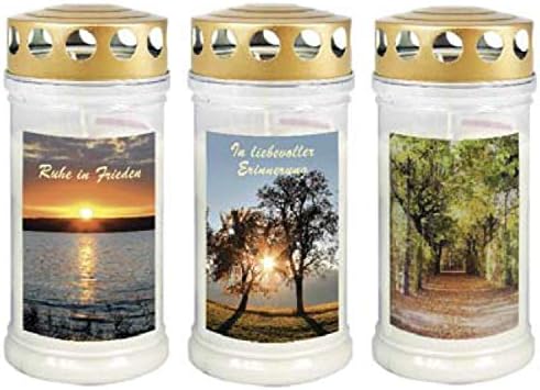 Eine würdige Geste des Gedenkens! Diese wunderschöne Grabkerze mit dem Motiv \Drei Engelchen\ in Weiß und Gold spendet Trost und Licht. Mit 17cm Höhe und 7,5cm Durchmesser ist sie ein dezenter Blickfang. Besonders praktisch: Bis zu 90 Stunden Brenndauer und absolut wetterfest - brennt zuverlässig bei Regen, Wind und Kälte. Hergestellt aus 100% reinem Pflanzenöl mit Baumwolldochten für saubere Verbrennung. Der goldfarbene Aluminium-Deckel rundet das elegante Design ab. Perfekt für den Friedhofsbesuch oder als stilles Gedenken zu Hause. Eine qualitative und langlebige Kerze für besondere Momente.