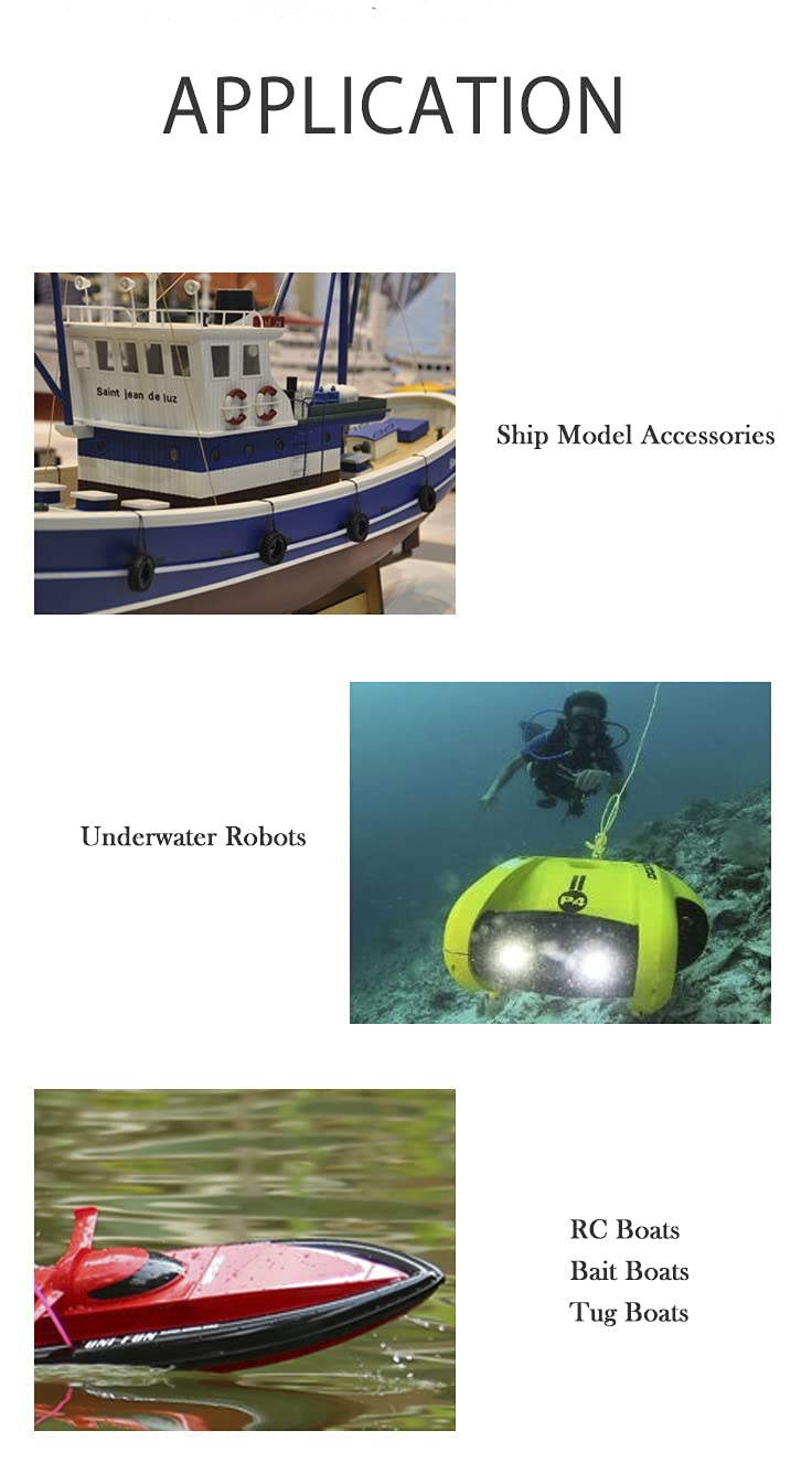 Power für dein RC-Boot! Dieser bürstenlose Unterwasser-Thruster bringt dein Modellschiff auf Touren. Mit 12-24V Spannung, 20A Maximalstrom und 300kV Wert liefert er bis zu 200W Leistung für kräftigen Schub. Aus robusten PLA- und PC-Materialien gefertigt, wasserdicht und salzwasserbeständig. Mit 74x75 mm Abmessungen und nur 162 g Gewicht passt er in die meisten Bootsrümpfe. Die 25 cm langen Kabel ermöglichen einfache Verkabelung. Erhältlich im und gegen den Uhrzeigersinn oder als Paar - perfekt für präzise Manövrierfähigkeit. Ideal für ferngesteuerte Boote, Angelboote, Zugnetzschiffe, Rettungsboote oder Unterwasserroboter. Tauchtiefe bis zu mehreren Metern - ideal für anspruchsvolle Marine-Anwendungen. Einfach installieren und sofort loslegen. Mach dein RC-Boot zum König der Gewässer!