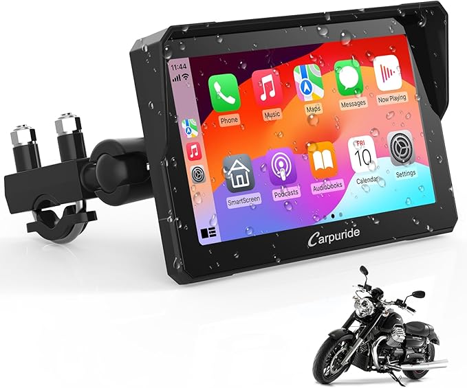 Nie wieder verlaufen mit dieser Mega-Power-Navigation für dein Motorrad! Der 7-Zoll Touchscreen ist auch bei Sonne super gut ablesbar und mit 1024x600 Auflösung richtig scharf. IPX7 wasserdicht bedeutet: Selbst bei Regen kein Problem! Bluetooth, CarPlay und Android Auto sind an Bord - telefoniere, navigiere und hör deine Lieblingsmusik, ohne das Handy zu zücken. Der F133-B 64-Bit Prozessor sorgt für flotte Performance. Mitgeliefert wird alles, was du zur Montage brauchst: Halterungen, Werkzeuge - einfach ans Bike bauen und losfahren. 24 Monate Garantie geben dir Sicherheit für deine Abenteuer!