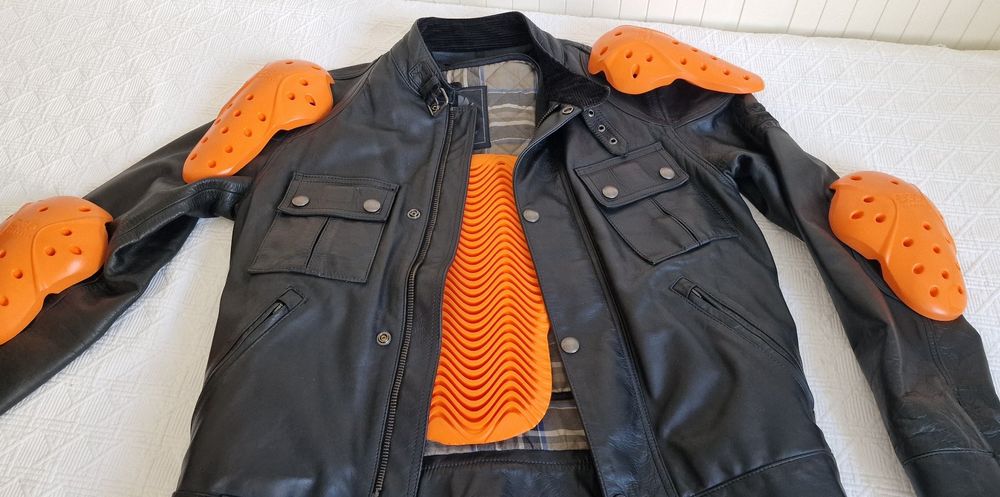 Wow, diese Belstaff Broughton Lederjacke ist einfach der Hammer! Aus gewachstem Kalbsleder gefertigt, sieht sie nicht nur mega stylisch aus, sondern bietet auch echten Schutz. Mit Café-Racer-Design perfekt für die Stadt und längere Motorradtouren. Die Jacke hat integrierte D3O Level 1 Protektoren an Ellenbogen und Schultern - da fühlst du dich sicher! Plus eine spezielle Tasche für einen Rückenprotektor (separat erhältlich). Das nierenförmige Rückenteil hält Wind ab, die seitlichen Nietenversteller sorgen für perfekte Passform. Praktische Seitentaschen mit Reißverschluss und eine 15 cm lange Innentasche für Wertsachen. Die durchgehend gravierte Hardware im Stealth-Look macht das Gesamtbild komplett. Als Motorradschutzbekleidung der Klasse AA getestet - da weißt du, was du hast! Ob für den täglichen Weg zur Arbeit oder die Wochenendtour - mit dieser Jacke bist du bestens angezogen und geschützt. Ein echter Blickfang mit britischem Understatement!