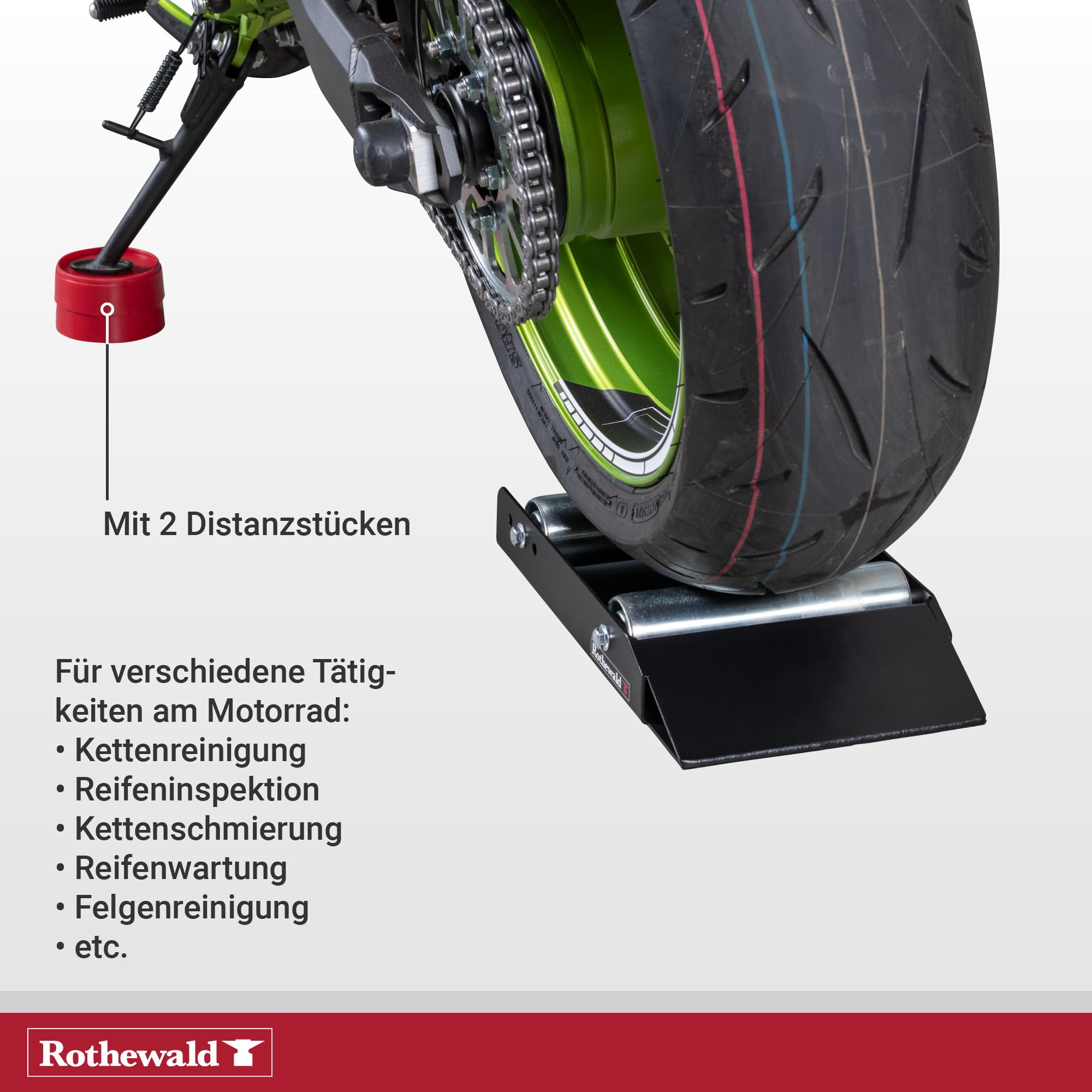 Endlich mal easy Motorrad putzen! Mit diesem orangenen Reinigungsständer von HOMCOM wird die lästige Kettenpflege zum Kinderspiel. Einfach das Rad draufstellen - die schrägen Rollen machen das super einfach - und dann drehst du es locker mit der Hand. So kommst du perfekt an die Kette zum Schmieren und an die Felgen zum Reinigen. Hält bis zu 220kg aus - also auch für schwere Maschinen geeignet. Der Stahlrahmen ist mega stabil und die Aluminiumrollen laufen super smooth. Passt für Reifen bis 180mm Breite - sollte also für die meisten Bikes reichen. Keine Montage nötig - einfach auspacken und loslegen! Kompakt genug für die Garage und passt sogar in nen Motorradkoffer. Wenn du dein Bike liebst, aber keine Lust auf umständliches Putzen hast, ist das hier deine Lösung. Macht einfach Spaß und spart ne Menge Zeit!