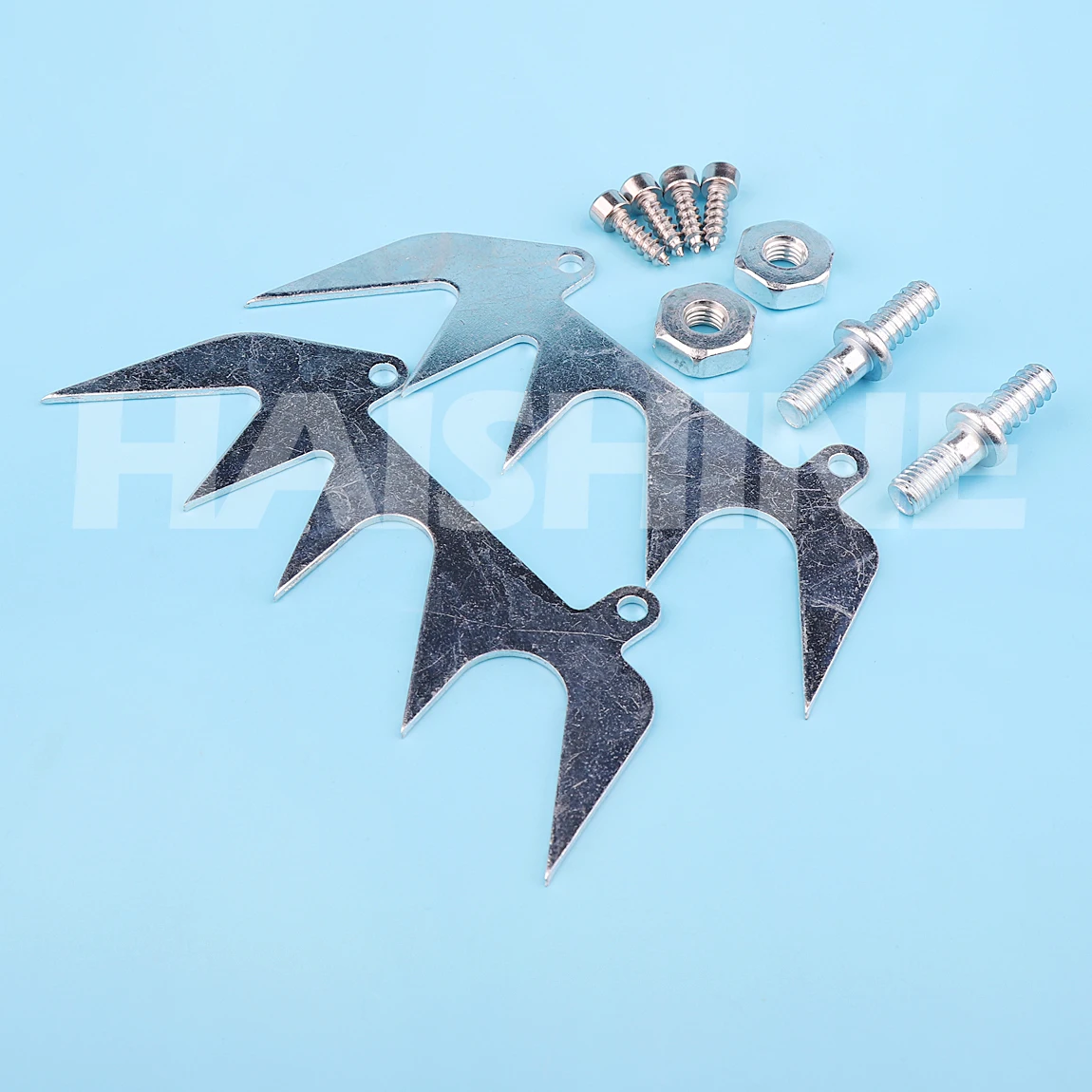 Für alle Waldarbeiter und Holz-Fans! Dieses 2-teilige Set mit Fellspitzen ist der ideale Ersatz für eure Motorsäge. Perfekt kompatibel mit MS170, MS180, MS210, MS250 und den Modellen 017, 018, 021. Aus Metall gefertigt und richtig hart im Nehmen - die Dinger halten was aus! Einfach zu installieren, kein großes Gefummel. Super praktisch in der Landwirtschaft, Forstwirtschaft oder einfach nur für den Garten. Wenn eure alte Fellspitze kaputt ist, seid ihr damit bestens bedient. Das Set kommt mit 2 Spikes und 4 Schrauben - also alles dabei, was ihr braucht. Farbe wie auf den Bildern zu sehen. Kleiner Hinweis: Wegen manueller Messung kann's minimale Größenabweichungen geben, aber das ist ja normal. Macht die Arbeit mit der Kettensäge gleich viel einfacher!