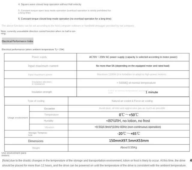 Der Treiber arbeitet mit Eingangsspannungen von AC70V bis 230V und erreicht Spitzendrehzahlen von bis zu 20.000 U/min. Das bedeutet: Hohes Drehmoment auch bei niedrigen Drehzahlen und stabiler Betrieb unter verschiedenen Bedingungen.
