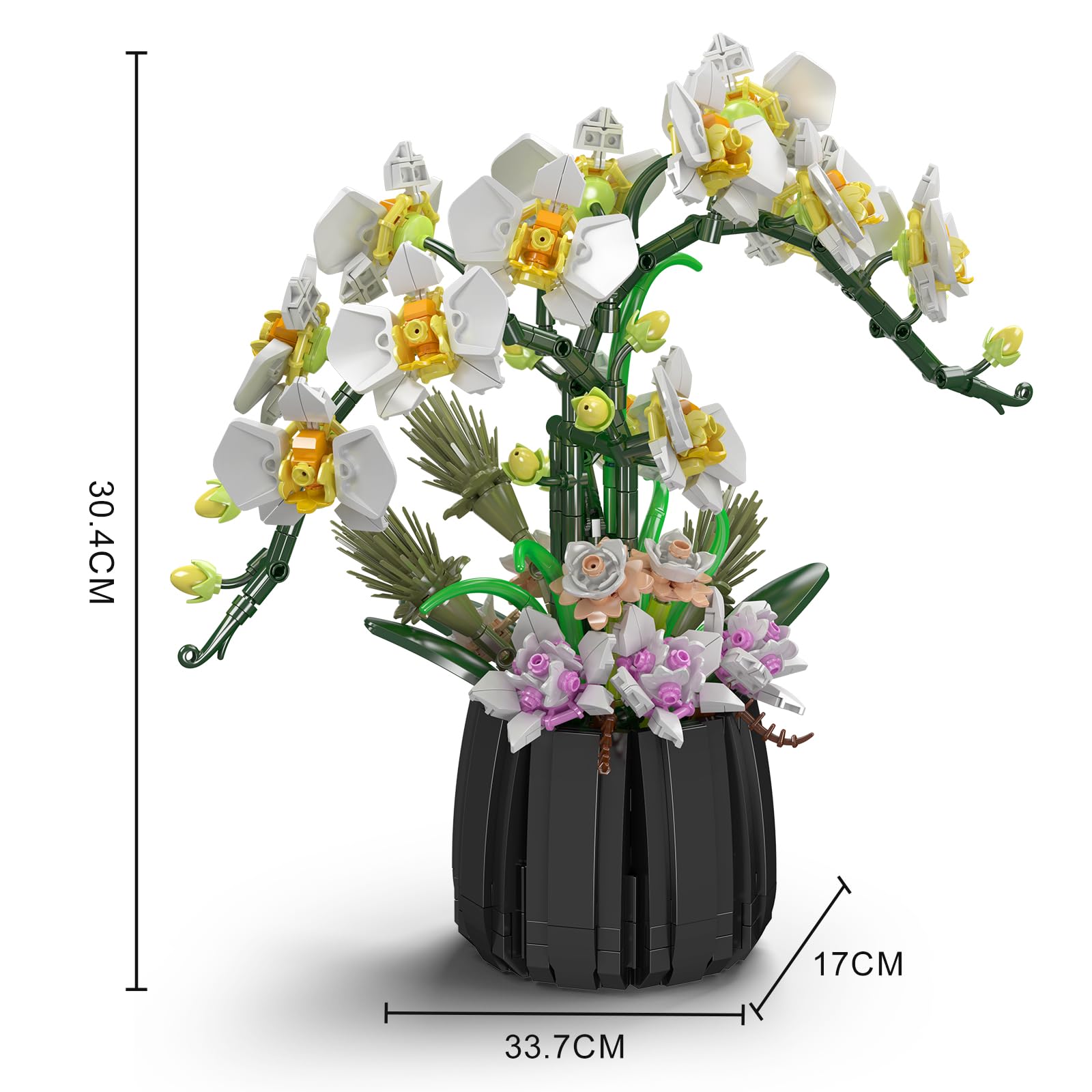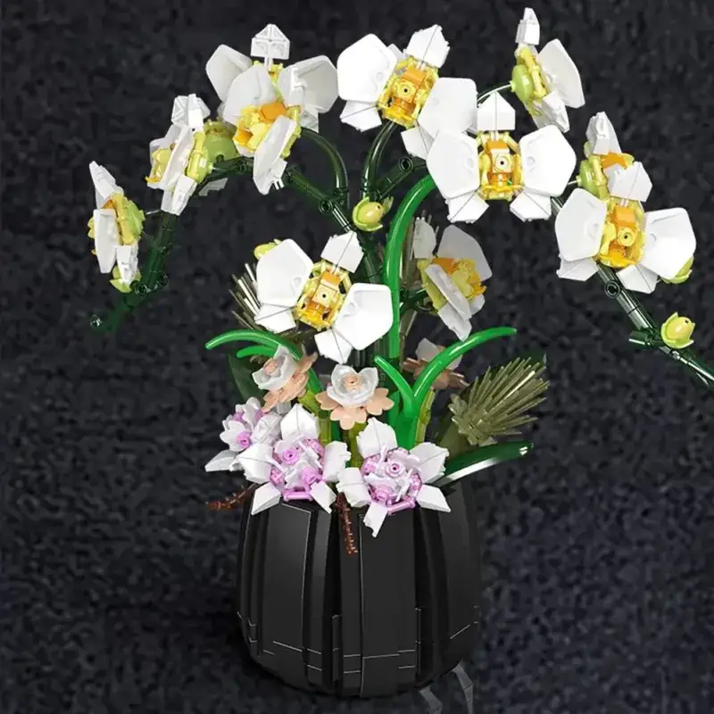 Boah, dieses Orchideen-Baustein-Set von Mould King ist einfach der Hammer! Mit satten 1014 Teilen baust du dir eine total realistisch aussehende Orchidee, die niemals verwelkt. Perfekt für alle, die was Dauerhaftes für die Wohnung suchen oder einfach Bock auf ein cooles Bastelprojekt haben. Die Teile sind mega hochwertig - aus umweltfreundlichem ABS-Material, super präzise geformt und ohne scharfe Kanten. Das Beste: Die Blütenstiele und Zweige sind verstellbar, du kannst die Orchidee also ganz nach deinem Geschmack formen. Die Anleitung ist total übersichtlich auf Papier, und die Teile sind nach Bauabschnitten verpackt - so verlierst du nie den Überblick! Die Farbverläufe von Rosa zu Weiß sehen einfach klasse aus, und mit dem schwarzen Holztopf wirkt das Ganze richtig edel. Ob im Wohnzimmer, auf dem Schreibtisch oder im Regal - dieses Teil ist ein echter Hingucker! Und kein Stress mit Gießen oder so... Einfach aufbauen und ewig Freude dran haben. Super auch als Geschenk für Bastelfreunde oder um mal was Anderes zu machen als diese Standard-Baustein-Sets.