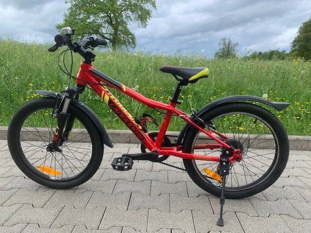 Perfektes erstes Mountainbike für Jugendliche! Dieses 20 Zoll Bike in knalligem Rot bringt dein Kind sicher durch die Gegend. Mit 7 Gängen meistert es jeden Hügel und die robuste Kohlenstoffstahl-Rahmenkonstruktion hält auch mal was aus. Tragfähigkeit bis 85kg - ideal für Teens. Praktische Extras: Schutzbleche vorne und hinten, damit auch bei Regen nichts ins Gesicht spritzt. Integrierte Kompass-Klingel für sicheres Fahren im Verkehr. Sogar ein Wasserflaschenhalter ist dabei! Bremsen vorne und hinten sorgen für volle Kontrolle. Ob auf der Straße oder im leichten Gelände - mit diesem Bike macht Fahrradfahren richtig Spaß!