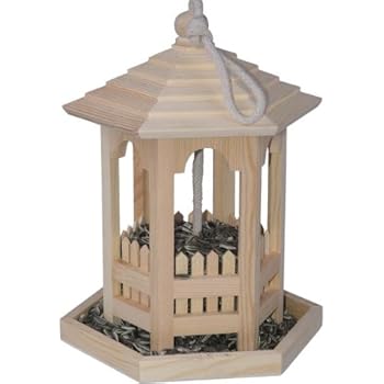 Mucola Vogelfutterhaus 6-eckig 48cm - Mit Futterspender & Bitumendach