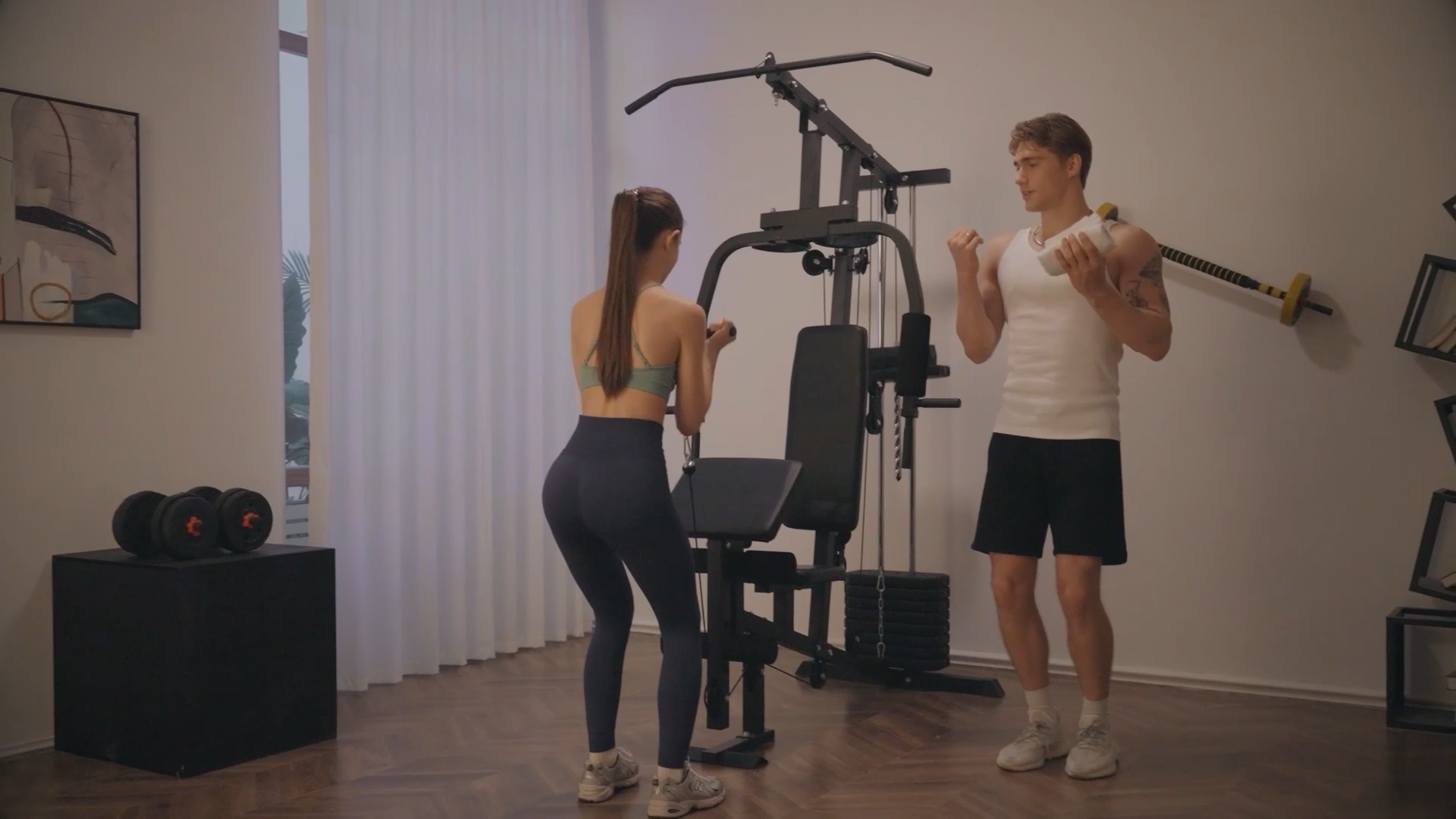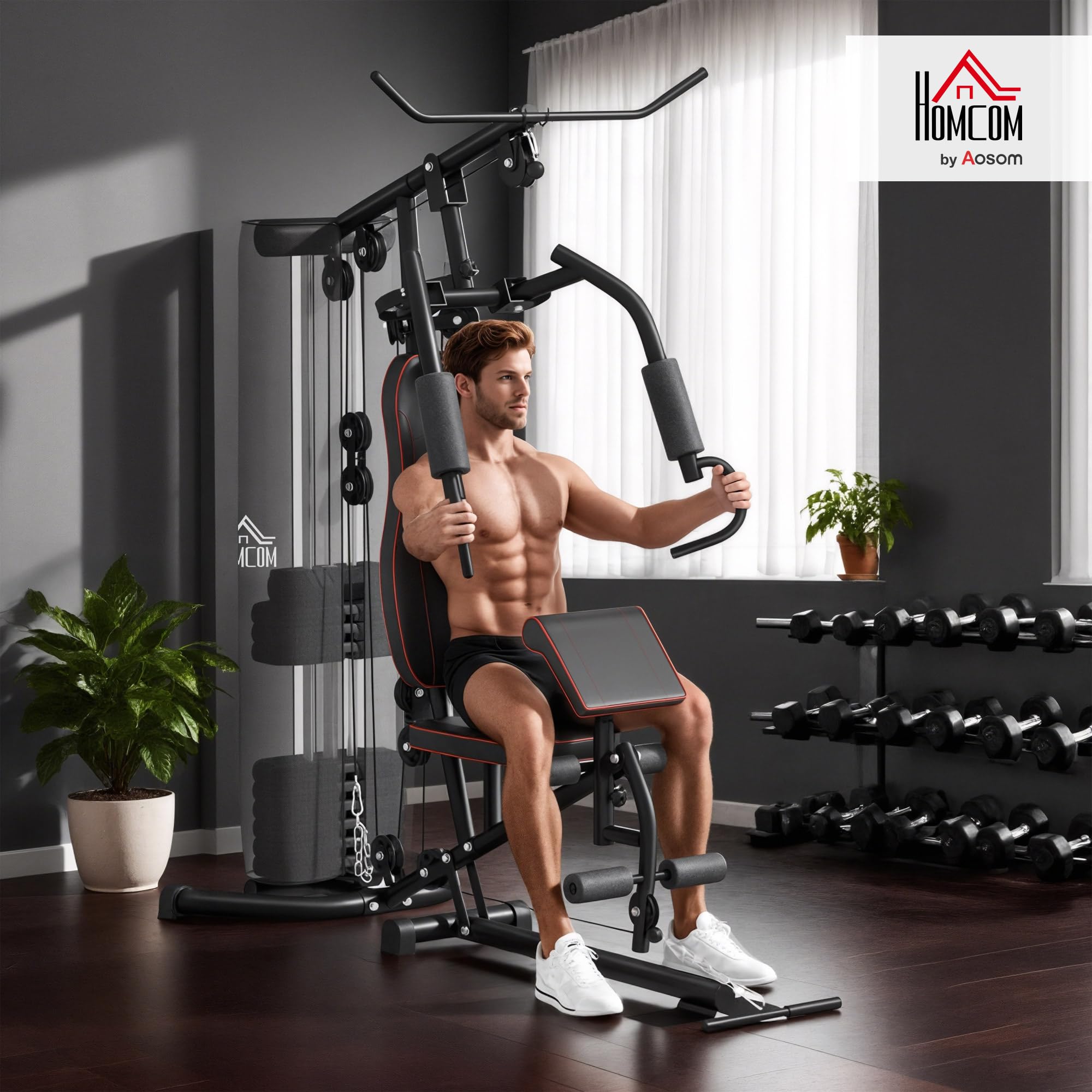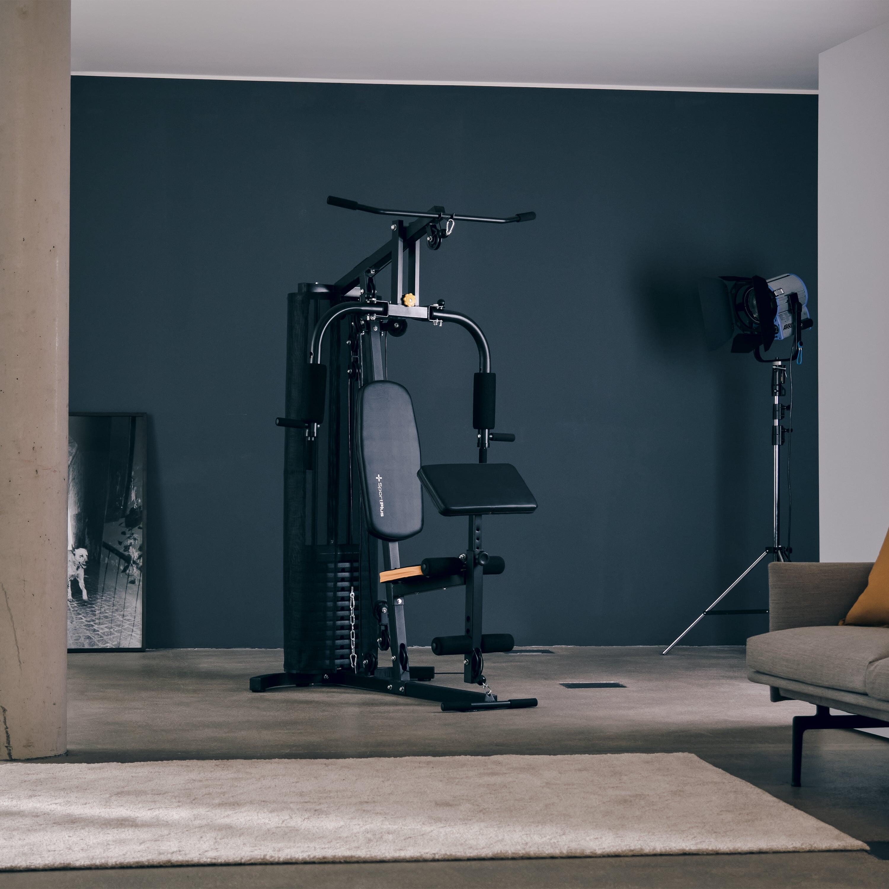 Verwandle dein Zuhause in ein professionelles Fitnessstudio mit dieser HOMCOM Multifunktions-Kraftstation! Mit 10 Gewichtsblöcken à 4,5kg (insgesamt 45kg) und über 35 verschiedenen Übungen trainierst du effektiv deinen ganzen Körper. Enthalten sind: Latzug- und Butterflystange, Seilzug oben und unten, Brustpresse, Beincurler und eine komfortable Hantelbank mit Kunstlederbezug. Der robuste Stahlrahmen trägt bis zu 150kg, die Stahldrähte sind bis 500kg getestet. Rutschfeste Füße sorgen für absolute Stabilität. Maße: 170x104x205cm, Klimmzugstange bei 200cm Höhe. Die gepolsterten Schaumstoffrollen bieten maximalen Komfort. Einfache Montage mit bebilderter Anleitung – geliefert in 4 Paketen. Perfekt für Krafttraining, Muskelaufbau und Cardio – spar dir das Fitnessstudio-Abo!