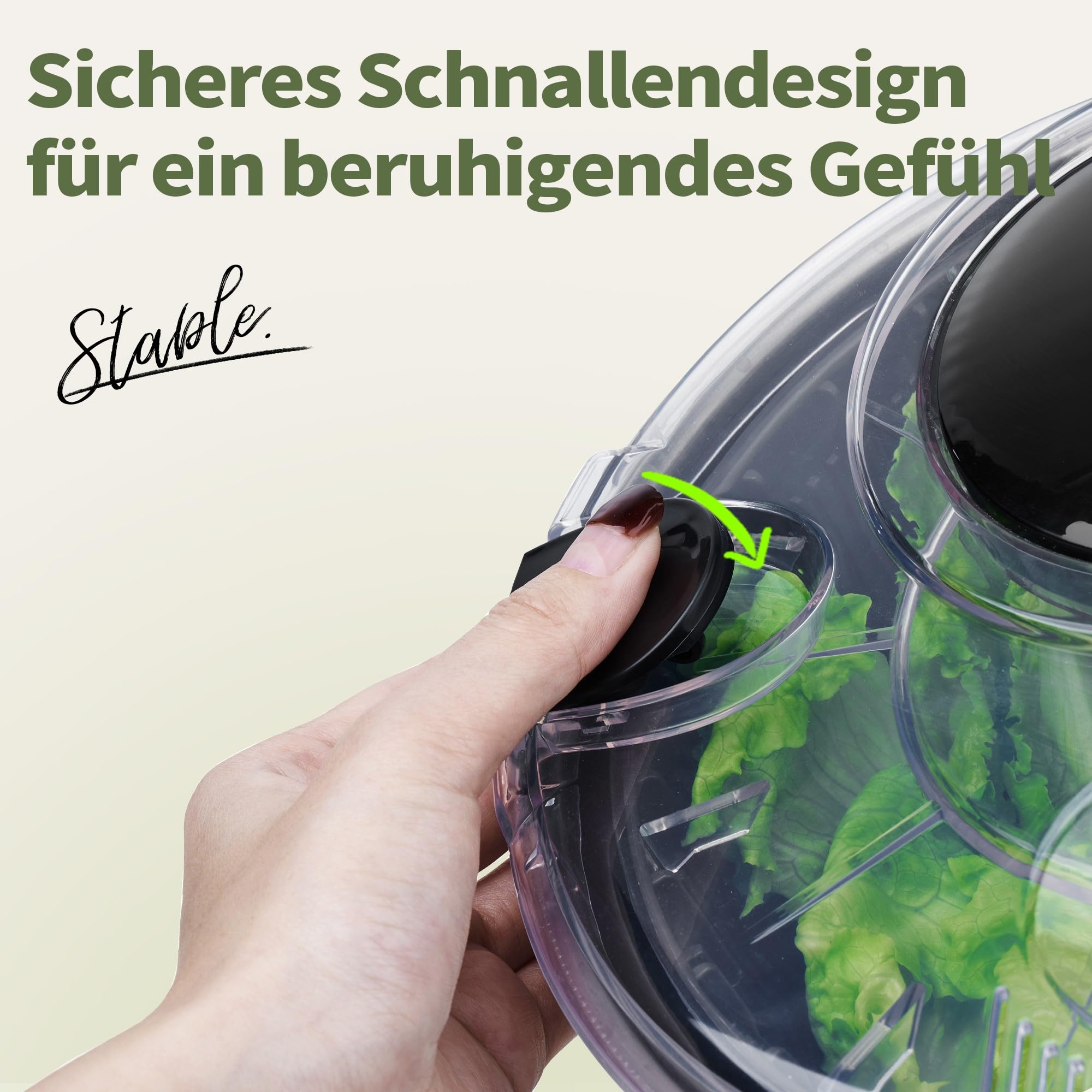 Schluss mit nassen Salatblättern! Die Kottwca Salatschleuder aus Edelstahl ist dein neuer bester Freund in der Küche. Mit vollem 5 Liter Fassungsvermögen schaffst du auch größere Mengen im Handumdrehen. Aber das ist noch nicht alles: Dieses Multitalent kommt mit 5 verschiedenen Aufsätzen und einem praktischen Eigelbtrenner. Einfach den Deckel drehen und schon wird dein Salat oder Gemüse perfekt trocken geschleudert. Aus lebensmittelechtem Edelstahl 304 gefertigt - absolut hygienisch und langlebig. Der rutschfeste Boden gibt sicheren Halt, und der praktische Bremsknopf stoppt die Rotation sofort. Nach Gebrauch einfach zerlegen und in die Spülmaschine stecken (max. 70°C). Perfekt für gesundheitsbewusste Köche, die Wert auf frische, knackige Salate legen. Ob Blattsalate, Kräuter oder fermentiertes Gemüse - mit diesem Helfer wird jede Mahlzeit zum frischen Genuss. Einfach unverzichtbar für jede moderne Küche!