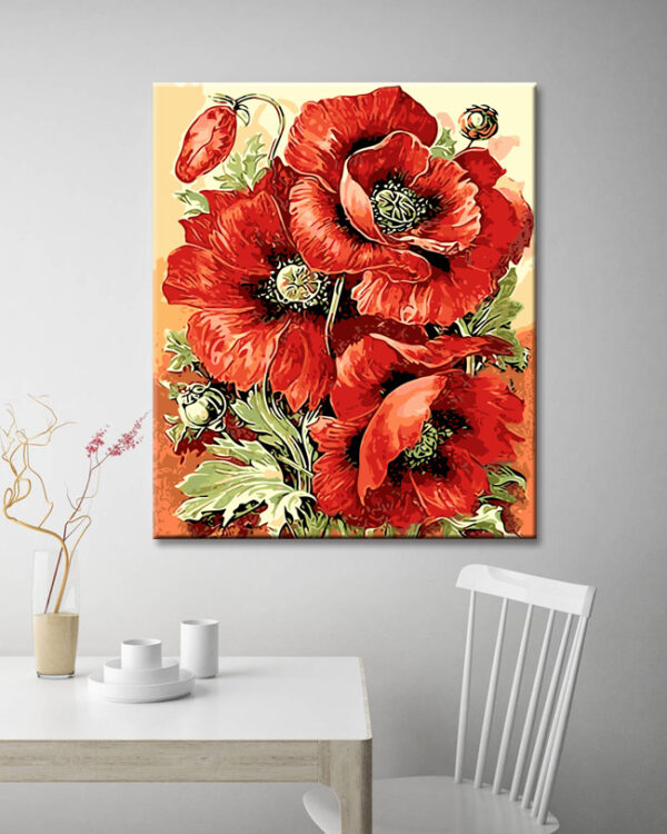 Tauche ein in die Welt der Malerei mit diesem wunderschönen Murando Malen nach Zahlen Set! Das Motiv zeigt elegante rote Mohnblumen in der Natur - einfach bezaubernd. Alles ist dabei: Hochwertige Leinwand bereits auf Holzspannrahmen aufgespannt, professionelle Acrylfarben und passende Pinsel. Kein Farben mischen notwendig - jede Farbe ist fertig gemischt und nummeriert. Die klaren Konturen und gut lesbaren Zahlen machen das Malen auch für Anfänger einfach. Am Ende hast du ein richtiges Gemälde, das sich sehen lassen kann! Die Leinwand hat 50x40 cm - perfekt für deine Wanddekoration. Ausführliche Anleitung mit Schritt-für-Schritt Erklärungen und Experten-Tipps helfen dir beim Malprozess. CE-gekennzeichnete EU-Qualität garantiert. Wenn du die Seitenränder auch bemalst, bekommst du einen modernen Galerie-Look. Perfekt zum Entspannen, als Geschenk oder einfach für kreative Stunden. Mach dein eigenes Kunstwerk!